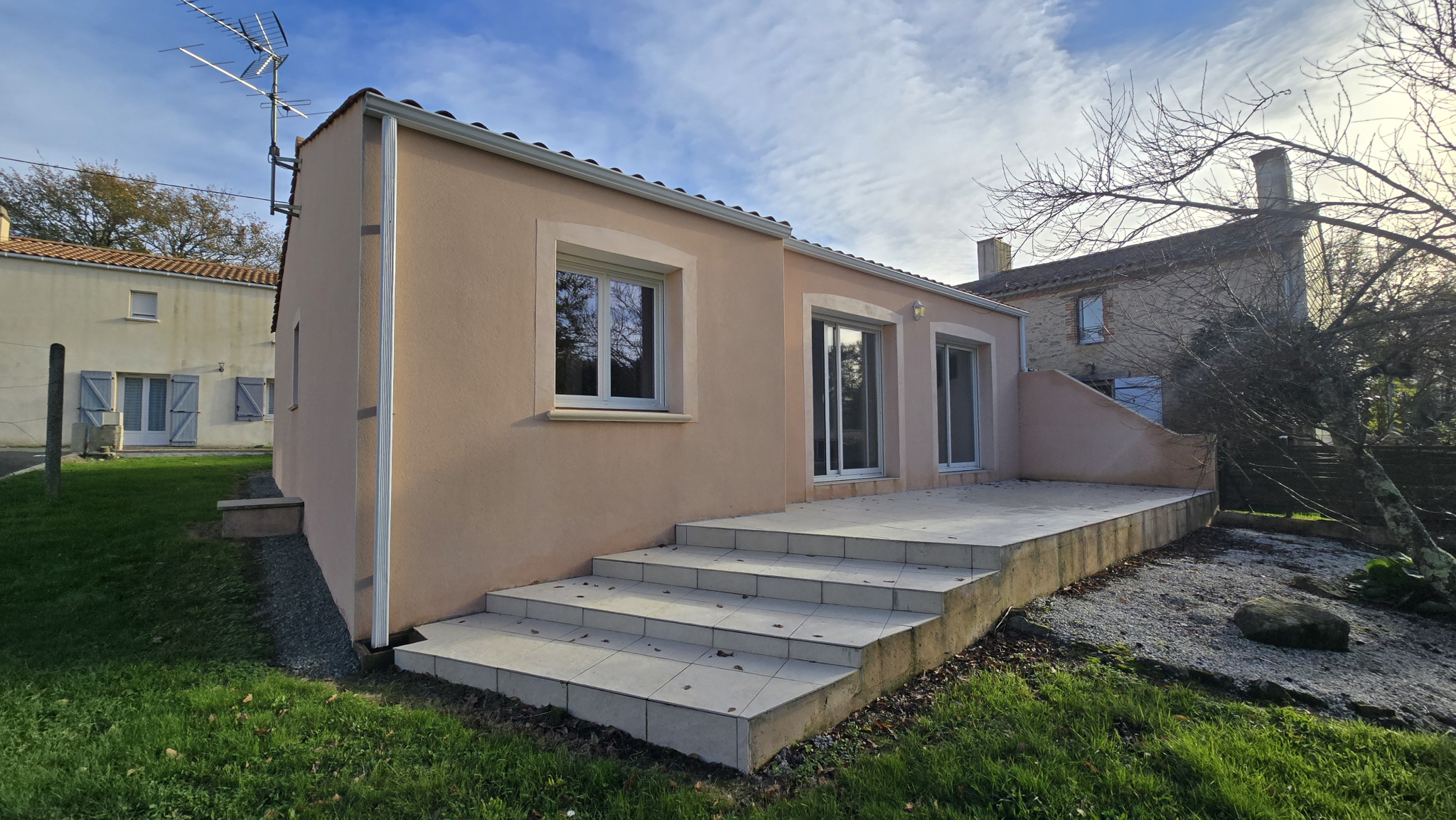 Elle offre une grande pièce de vie lumineuse avec deux grandes baies et une cuisine aménagée ouverte. La maison comprend également un espace nuit de deux chambres, une salle d'eau, un WC séparé, ainsi qu'un garage carrelé offrant la possiblité de nombreux rangements.