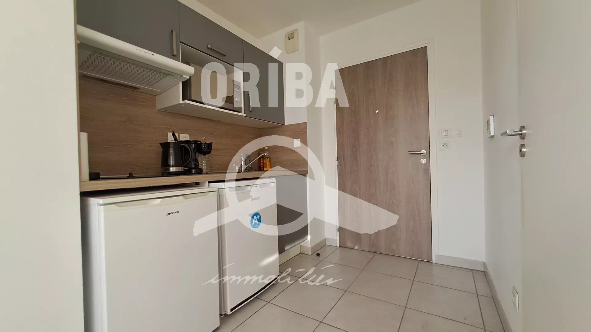 Entrée, salon séjour cuisine, espace nuit avec placards, salle d'eau avec wc. Terrasse de 5.44m² et une place de stationnement sécurisé complète ce bien.
