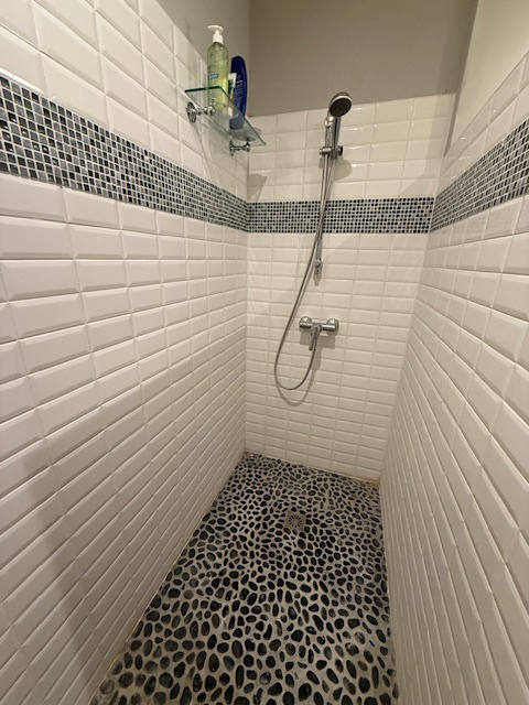 À l'étage, 2 chambres de près de 20 m2 chacune avec un dressing ainsi qu'une salle d'eau commune identique à celle du RC pour une surface de environ 5 m2.