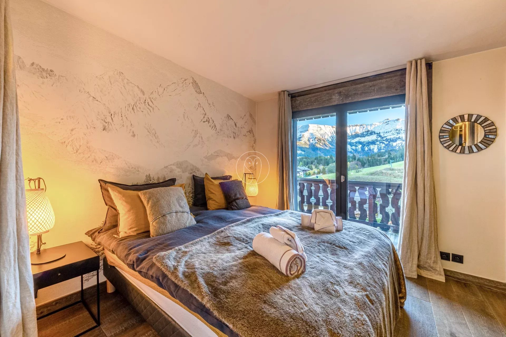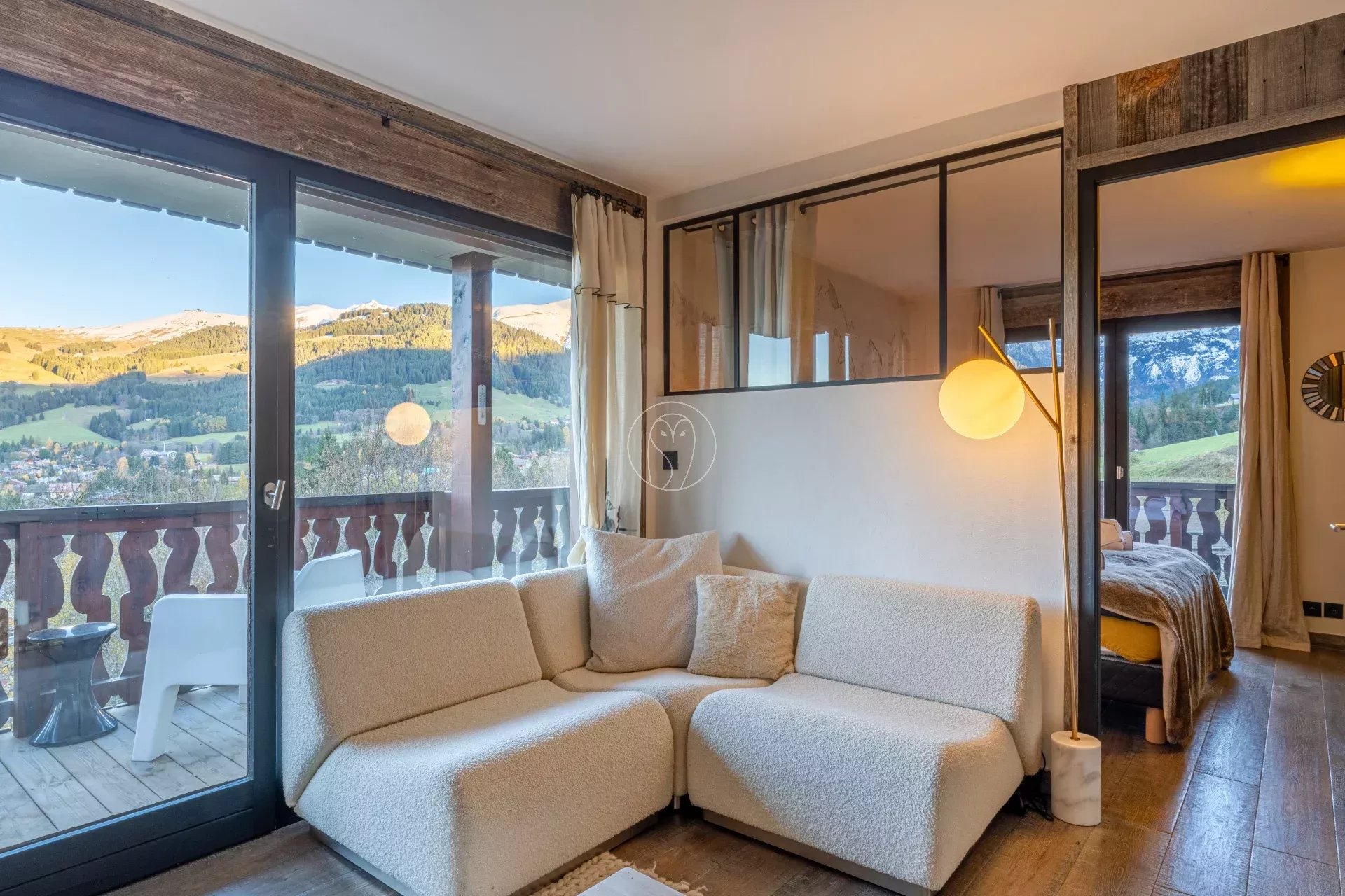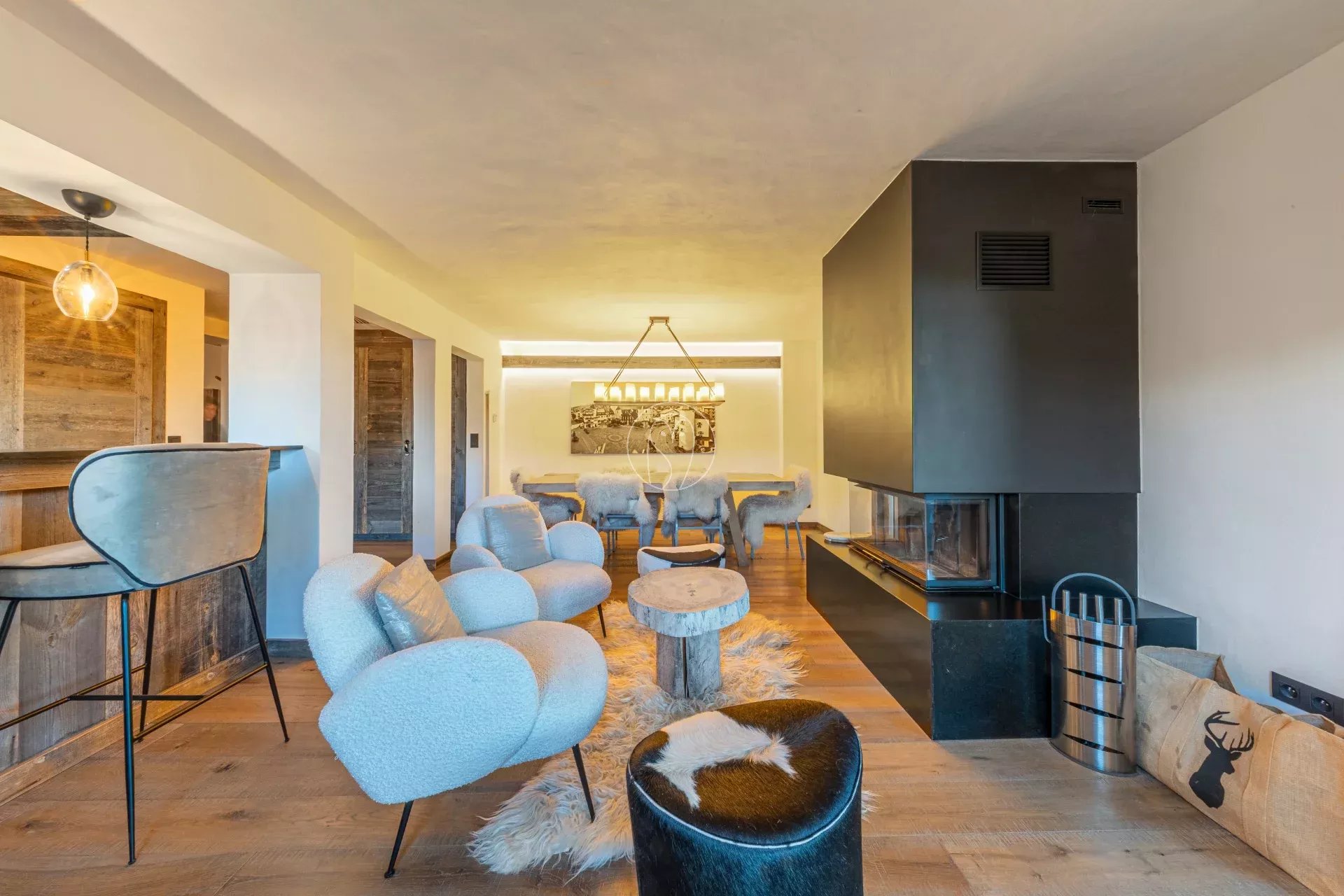 Découvrez ce superbe appartement entièrement rénové, lumineux et situé au pied des pistes, offrant une atmosphère chaleureuse.