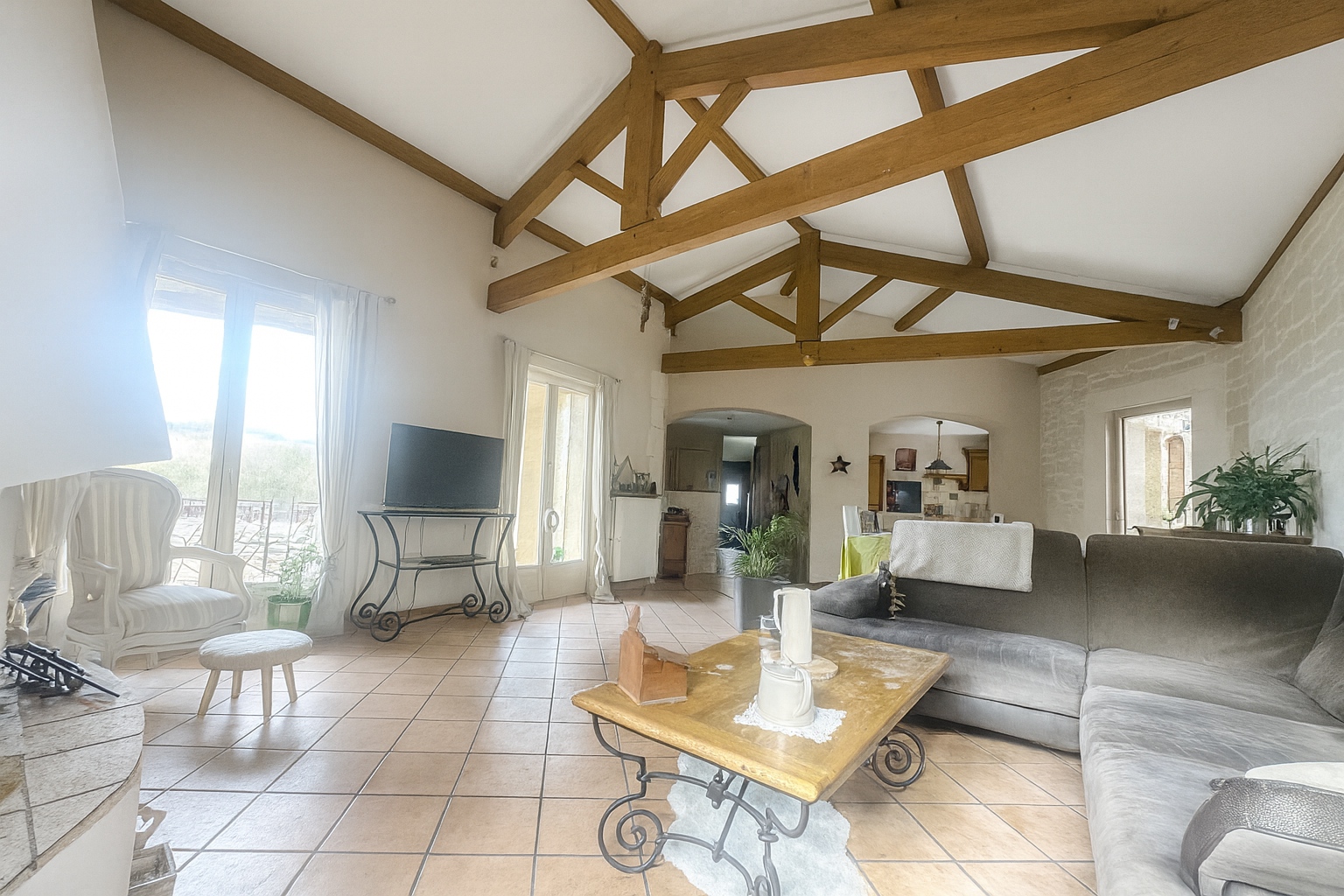 ELLE DISPOSE D'UNE BELLE PIÈCE DE VIE LUMINEUSE BÉNÉFICIANT D'UNE TRIPLE EXPOSITION, De 2 TERRASES IDÉALES POUR PROFITER DE LA VUE ET DES REPAS EN FAMILLE OU ENTRE AMIS AINSI QU'UNE MAGNIFIQUE PISCINE QUI COMPLÈTE PARFAITEMENT CE CADRE PRIVILÉGIÉ SUR TERRAIN CLOS ET ARBORÉ DE 1300m2