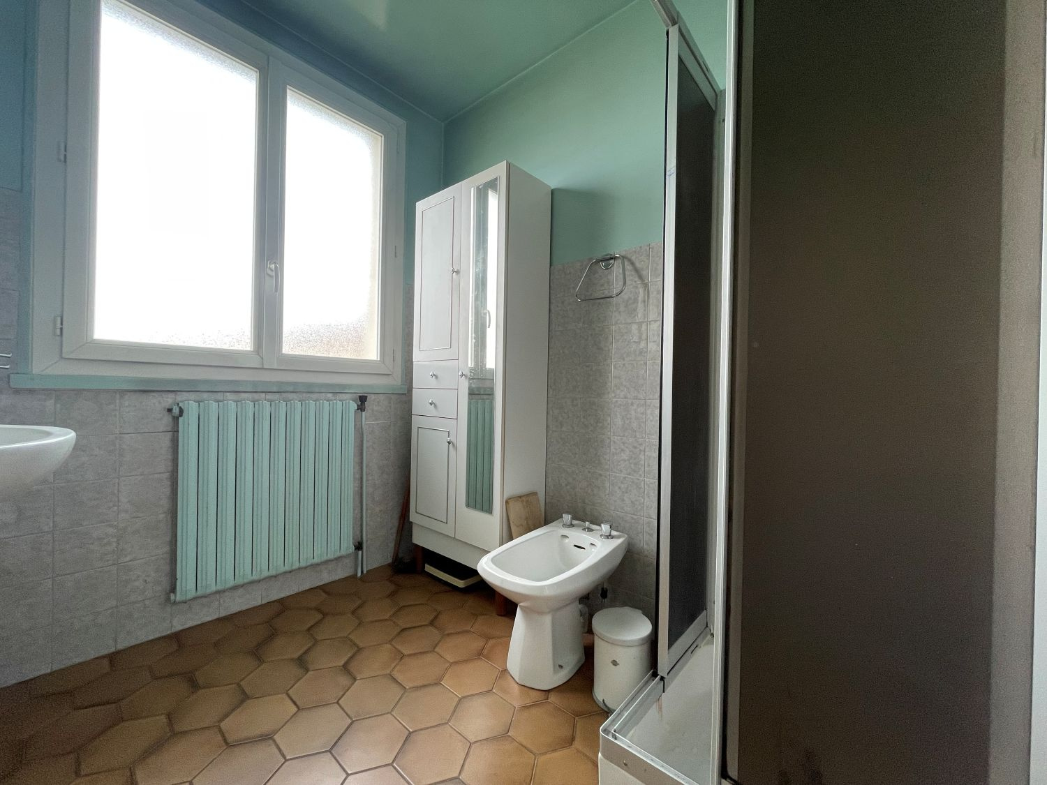 A l'étage : une cuisine fermée, un séjour lumineux donnant accès à un balcon bien exposé, deux belles chambres, une salle d'eau et un toilette séparé.