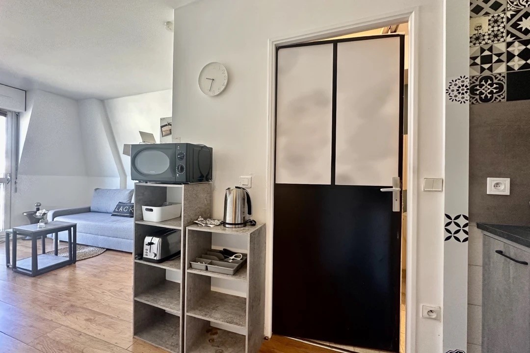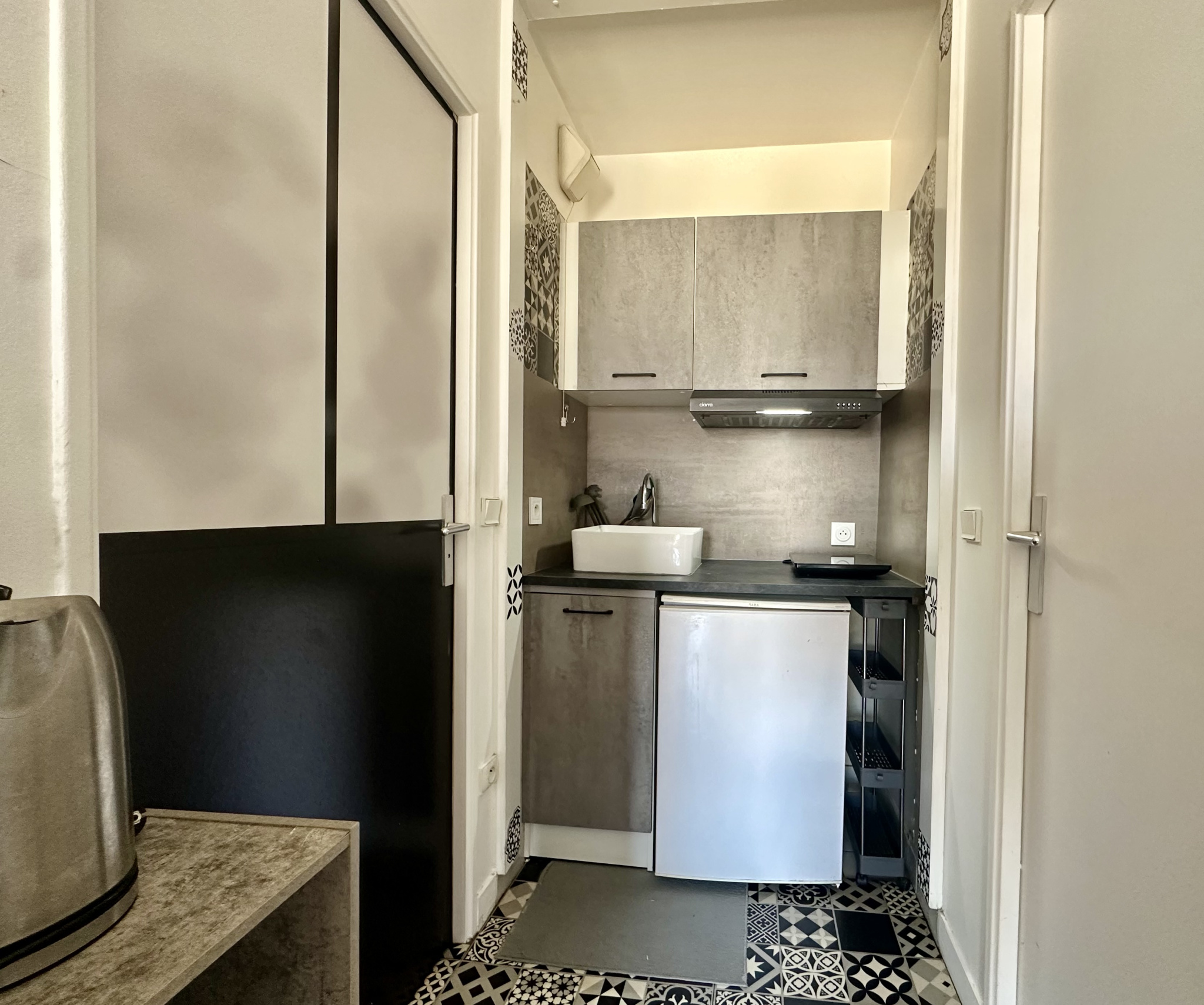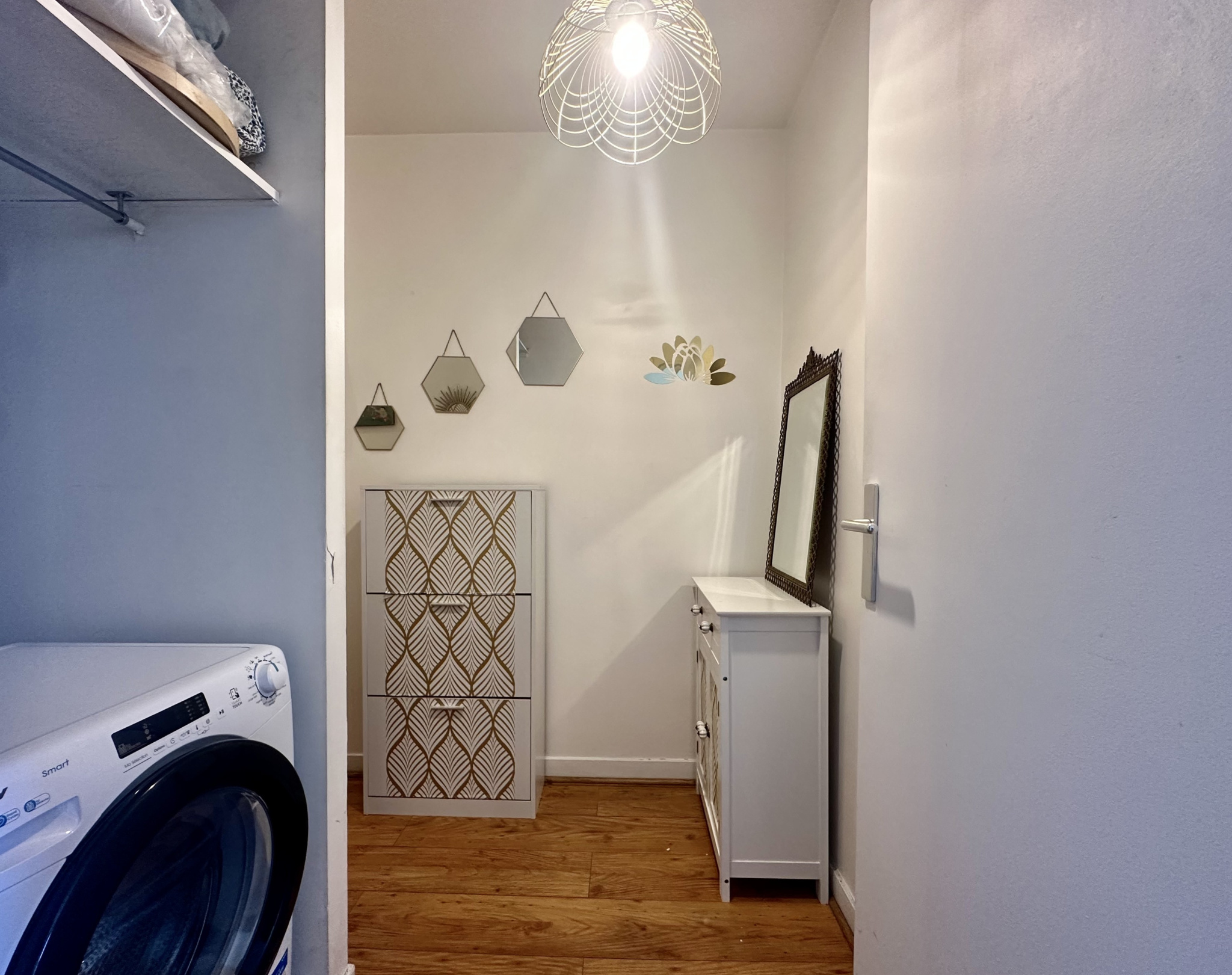 Il se compose d'une belle entrée avec placard et raccordement pour une machine à laver, un séjour LUMINEUX avec kitchenette, une salle de bains et un WC.