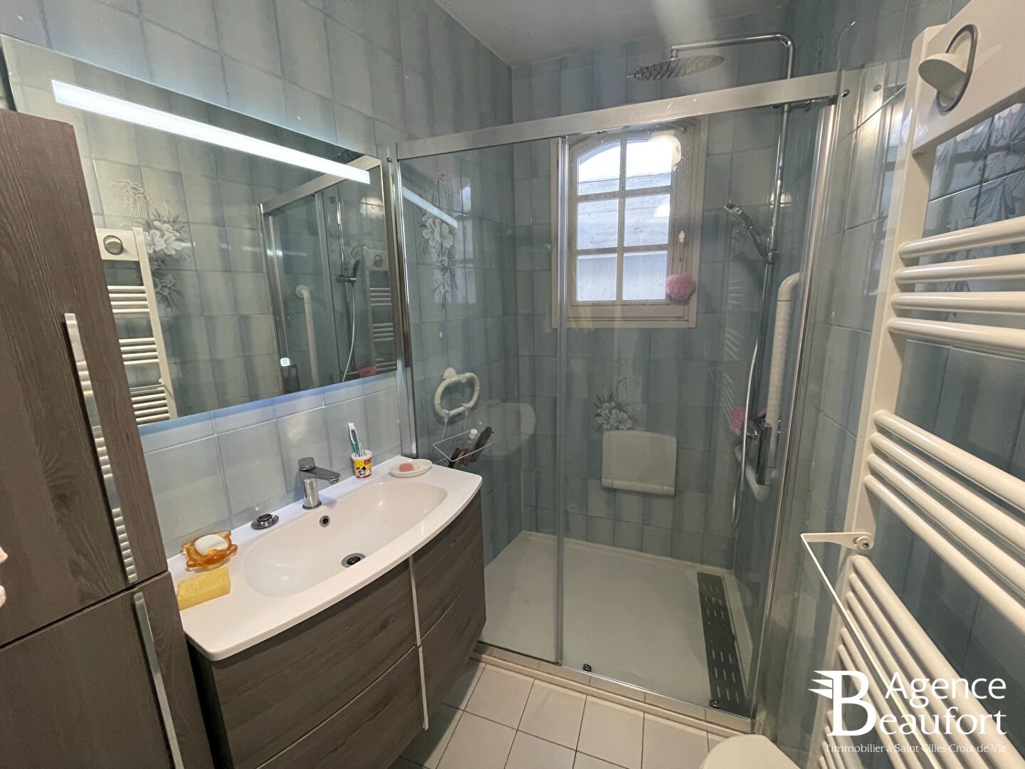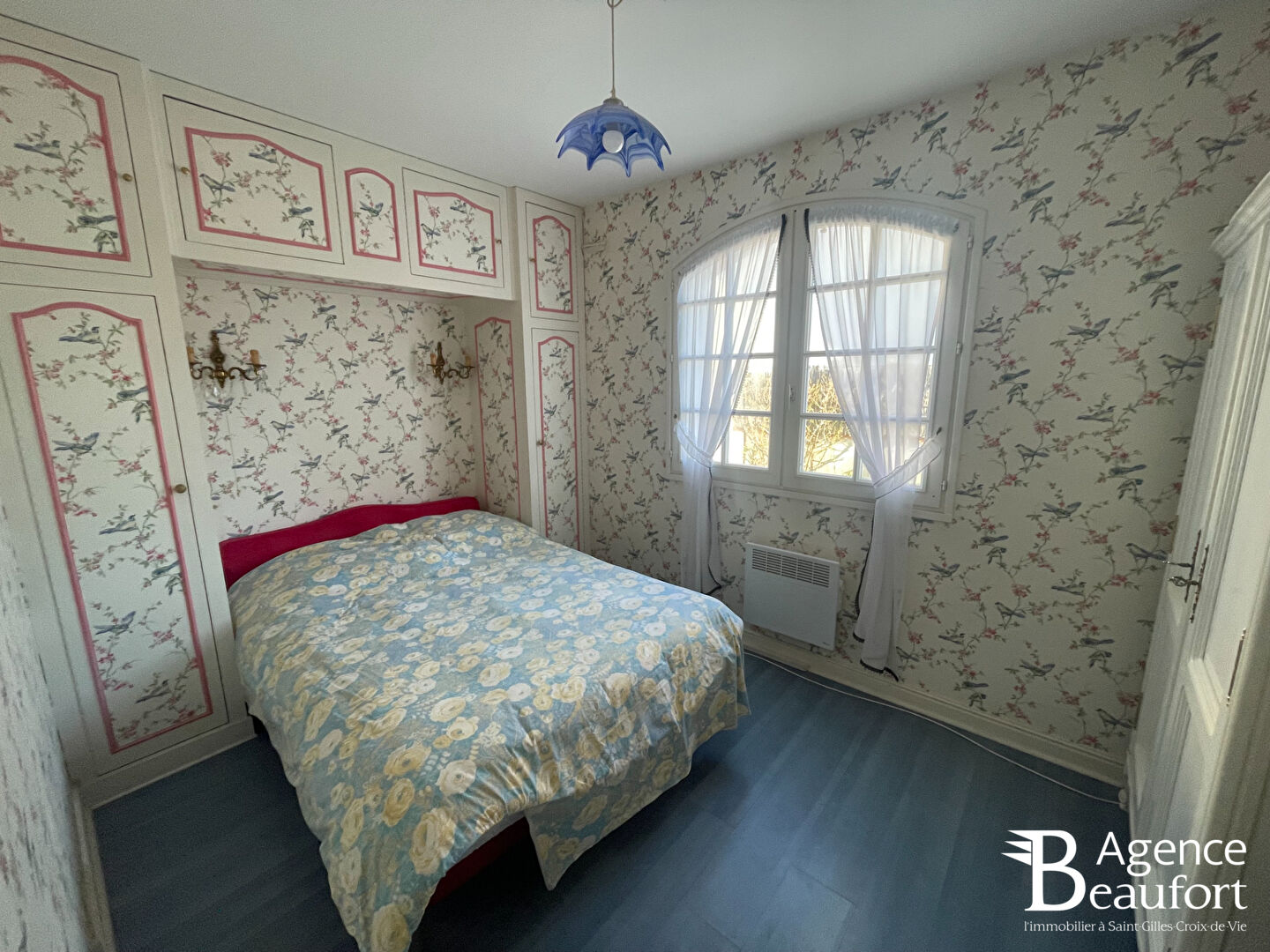 Quartier Boisvinet, à seulement 100 m de la plage, maison à rafraichir comprenant cuisine aménagée/équipée avec coin repas, salon avec cheminée insert, une chambre, salle d'eau, wc ; A l'étage : une chambre, salle de bains, wc.