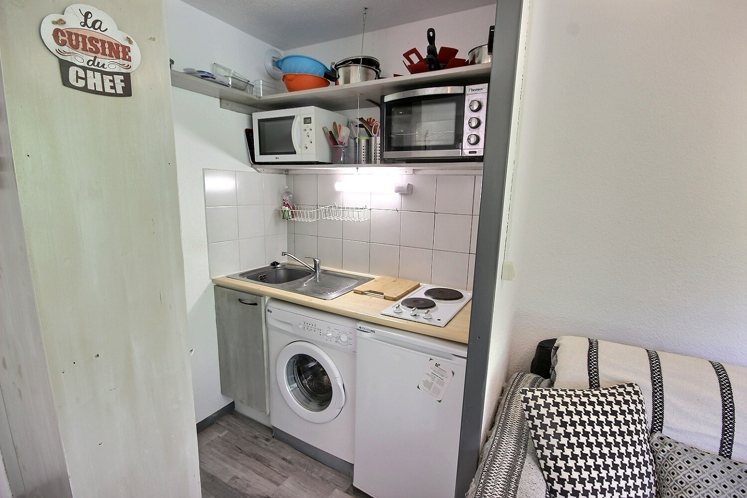 Ski aux pieds VALLANDRY Studio 24m² séjour double exposition Baie EST et fenêtre SUD. Meublé pour trois personnes. Balcon et casier à skis Possibilité de remeubler le coin montagne avec lits superposés à la place du dressing. Au centre de la station, tous commerces et navettes Visites sur RDV
