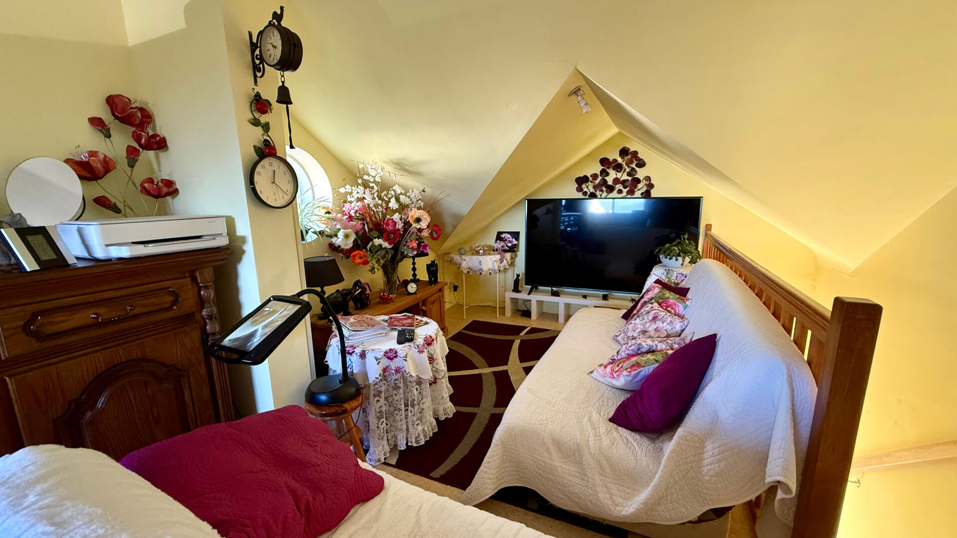 A l'étage, un appartement d'environ 38 m², actuellement loué, se compose d'une cuisine ouverte sur le salon-séjour, d'une chambre et d'une salle d'eau.