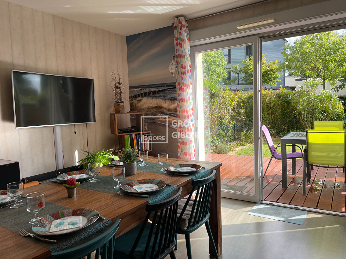 Agence Giboire - A vendre - Saint Malo - Rothéneuf quartier la Haize : Coup de coeur pour cet appartement T4 duplex proche des plages et du bourg. Vous profiterez d'un environnement végétal exceptionnel et du calme de la nature. Une grande terrasse et un jardin exposé au sud vous permettront de profiter pleinement d'un extérieur pour vos repas en famille. L'appartement totalise une surface de 76m² et se compose au rdc d'une pièce de vie de 33m² avec cuisine ouverte, d'une salle d'eau avec wc. L' étage se compose de trois chambres et d' une salle de bains avec wc.