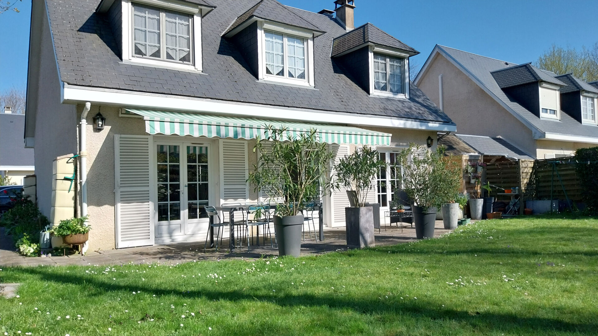 L'extérieur est une invitation à la détente : un joli jardin de 360 m² clos et fleuri, exposé ouest, avec arrosage automatisé, ainsi qu'une grande terrasse équipée d'un store électrique.