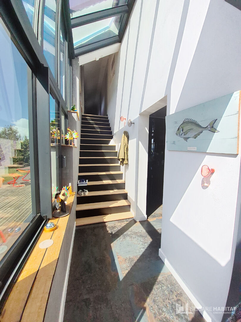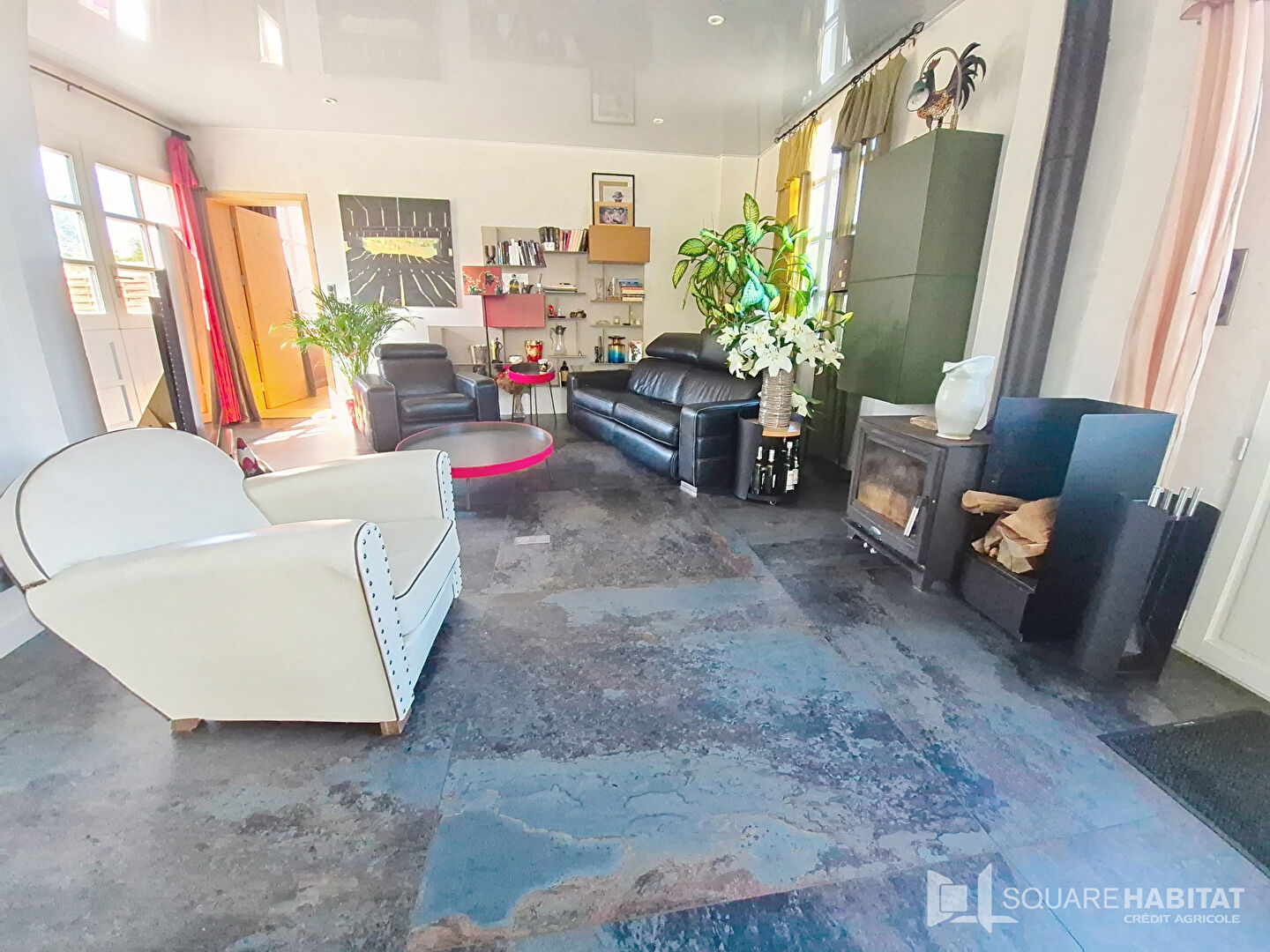 Au rez de chaussée une chambre parentale, toilettes séparées, un espace de vie de 65m² lumineux, chaleureux avec son poêle à bois et sa cuisine moderne et fonctionnelle.