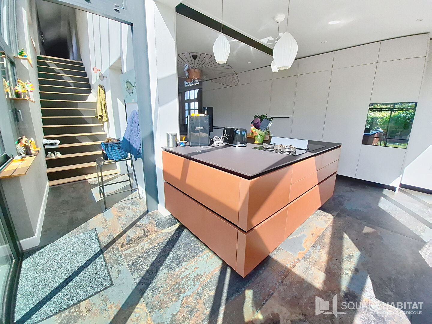 Au rez de chaussée une chambre parentale, toilettes séparées, un espace de vie de 65m² lumineux, chaleureux avec son poêle à bois et sa cuisine moderne et fonctionnelle.