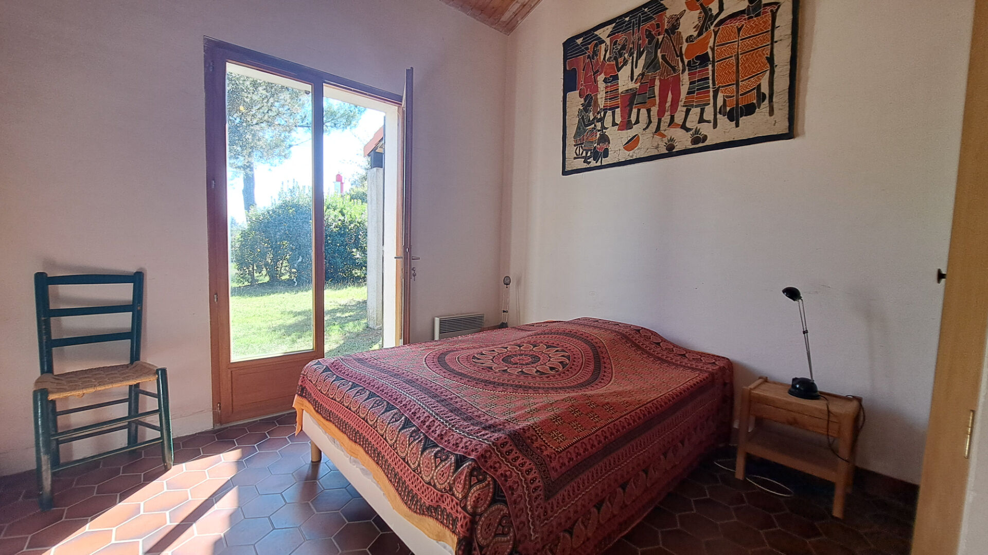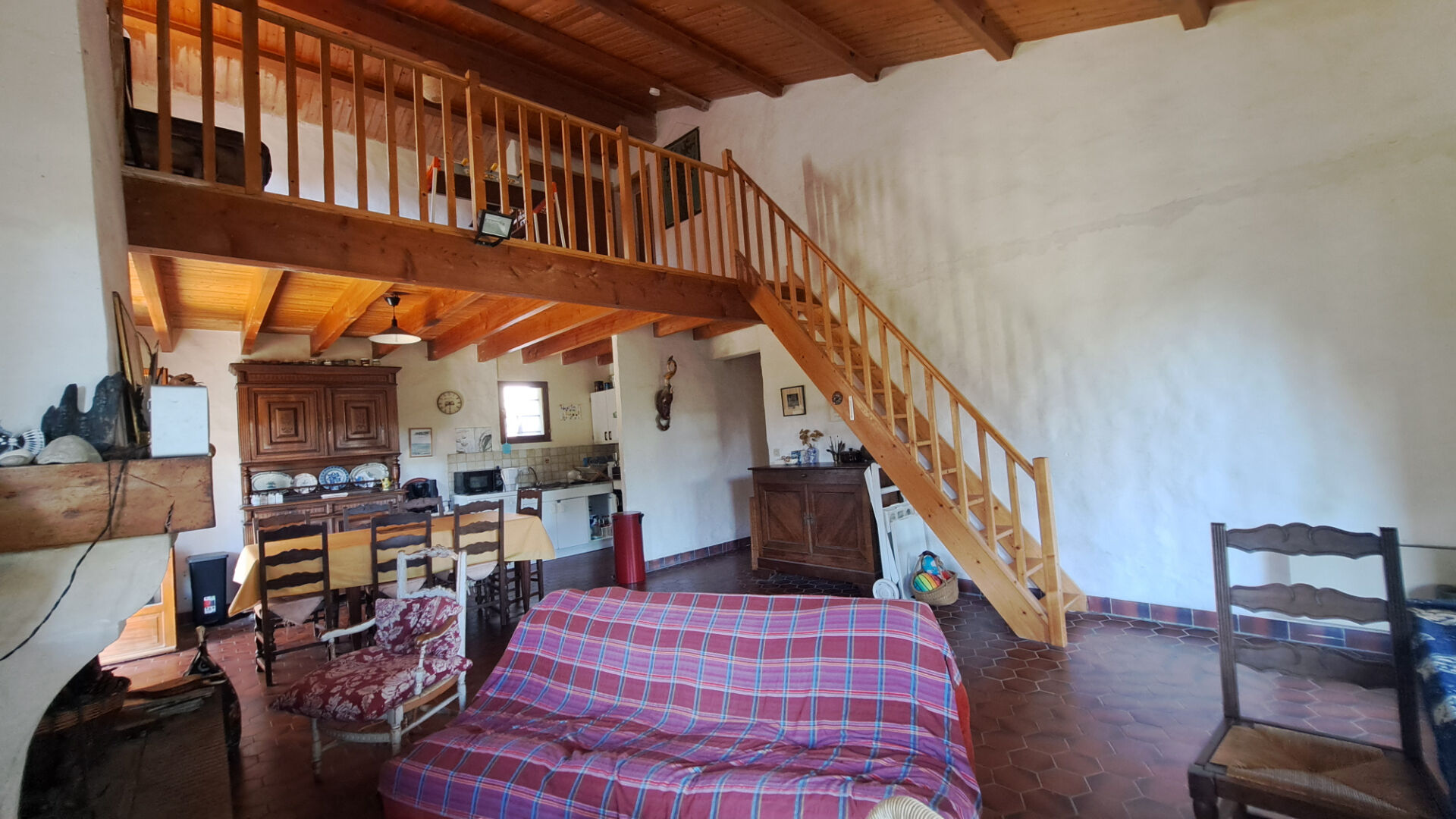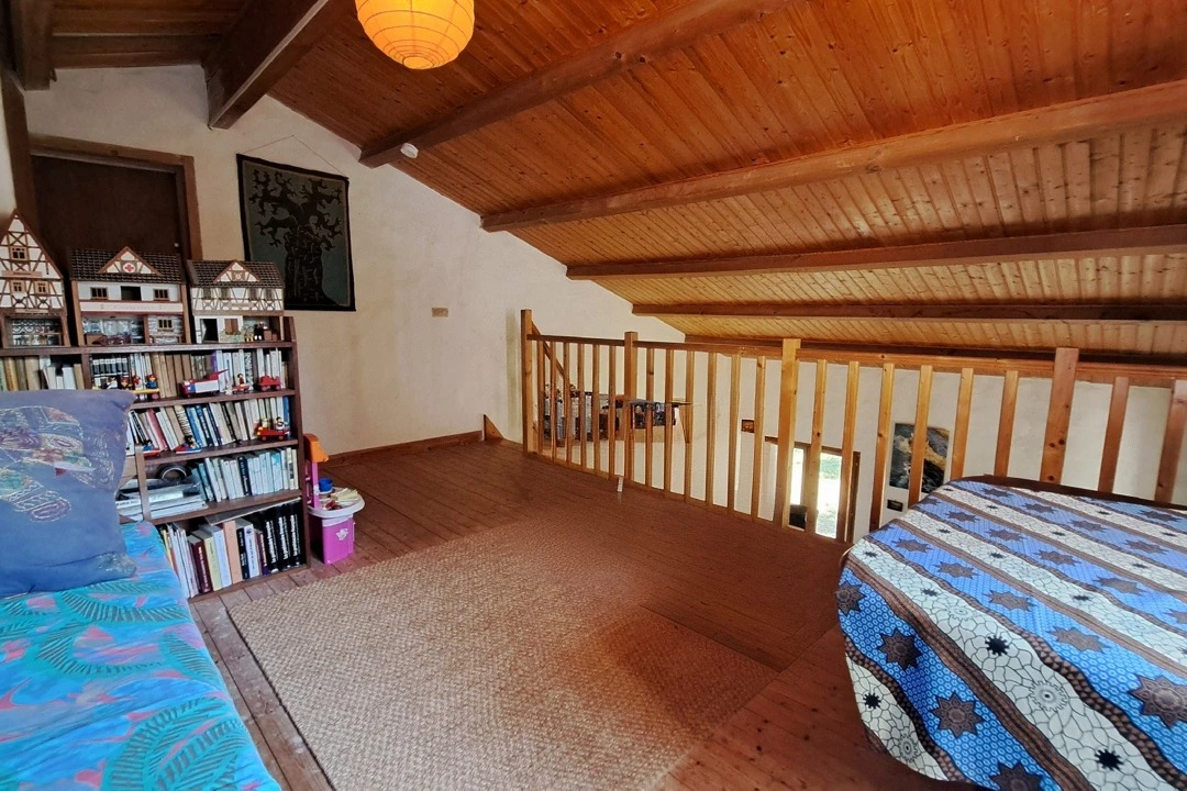 A l'étage, une grande mezzanine peut accueillir un bureau ou des couchages supplémentaires, deux chambres en enfilade.