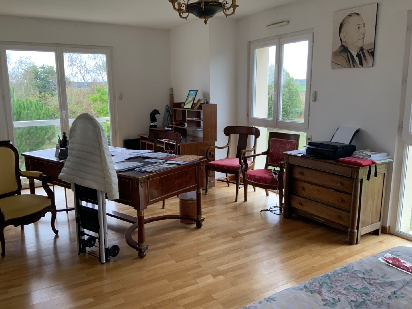 Au premier étage : palier desservant trois chambres dont une avec placard, un bureau, une salle de bains/WC,