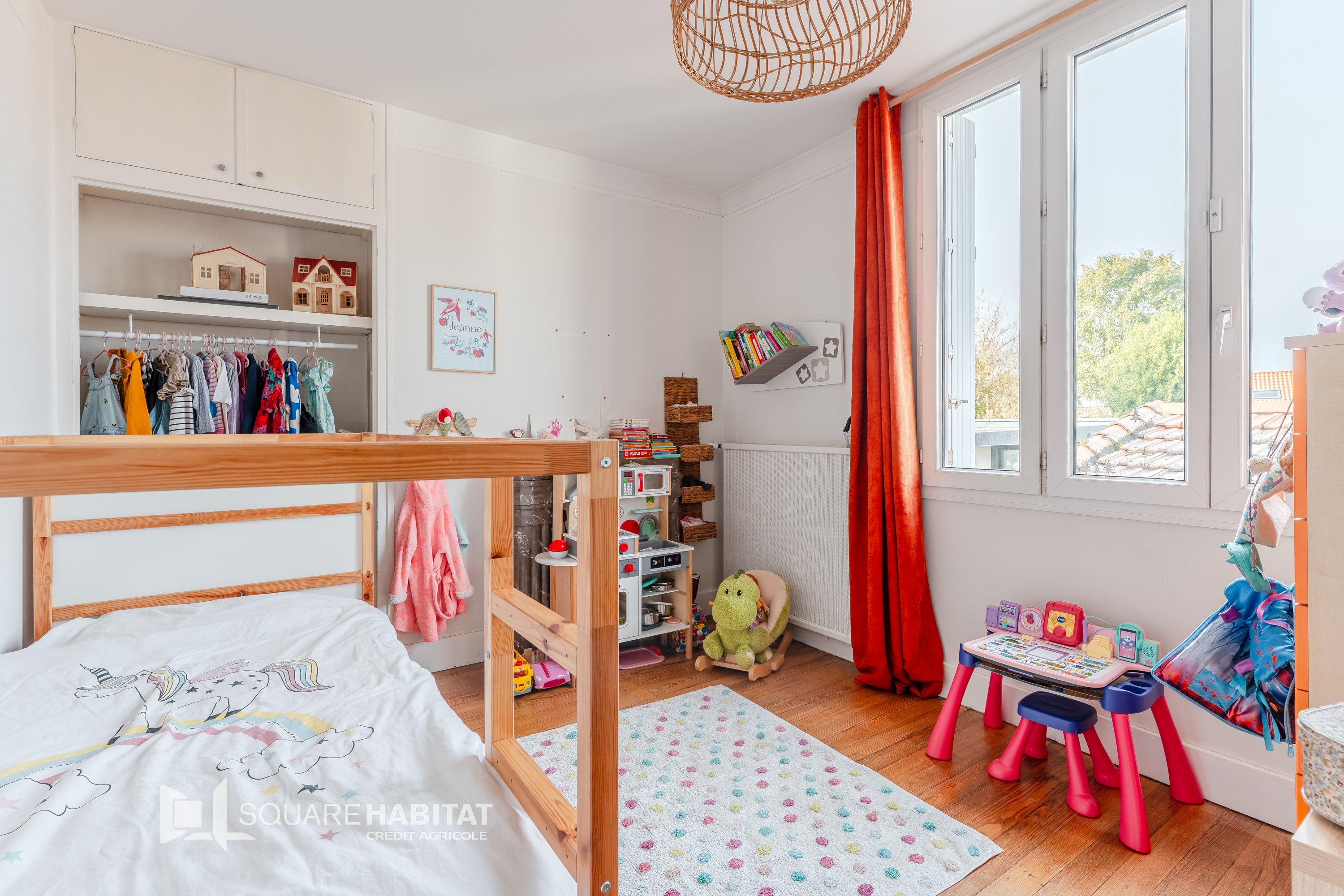 Aux étages, l'espace nuit se compose de trois chambres aux belles proportions, dont certaines avec rangements intégrés, et d'une salle de bain Cet agencement offre un parfait équilibre entre intimité et convivialité, adapté à la vie de famille.