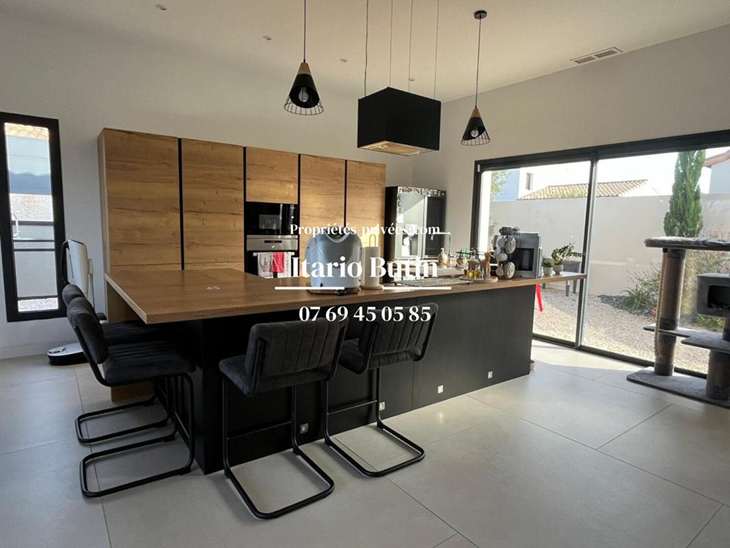 Édifiée en 2023, cette maison de plain-pied séduit dès l'entrée par son vaste espace de vie de près de 60 m² baigné de lumière, sublimé par de grandes ouvertures et une belle hauteur sous plafond qui accentue la sensation d'espace et de confort. La cuisine entièrement équipée, ouverte sur le séjour, s'intègre harmonieusement à l'ensemble et crée une atmosphère conviviale, parfaite pour recevoir.