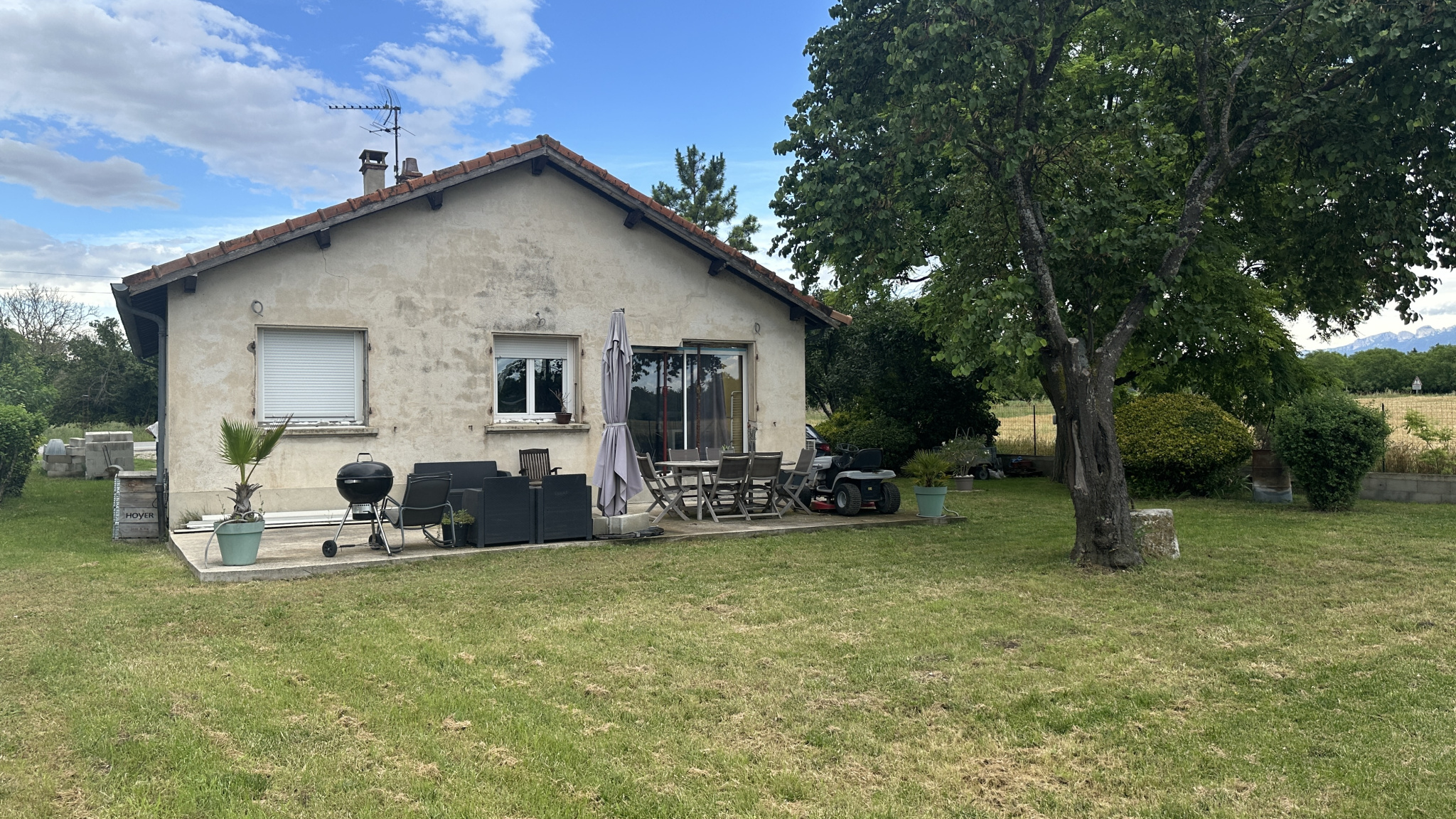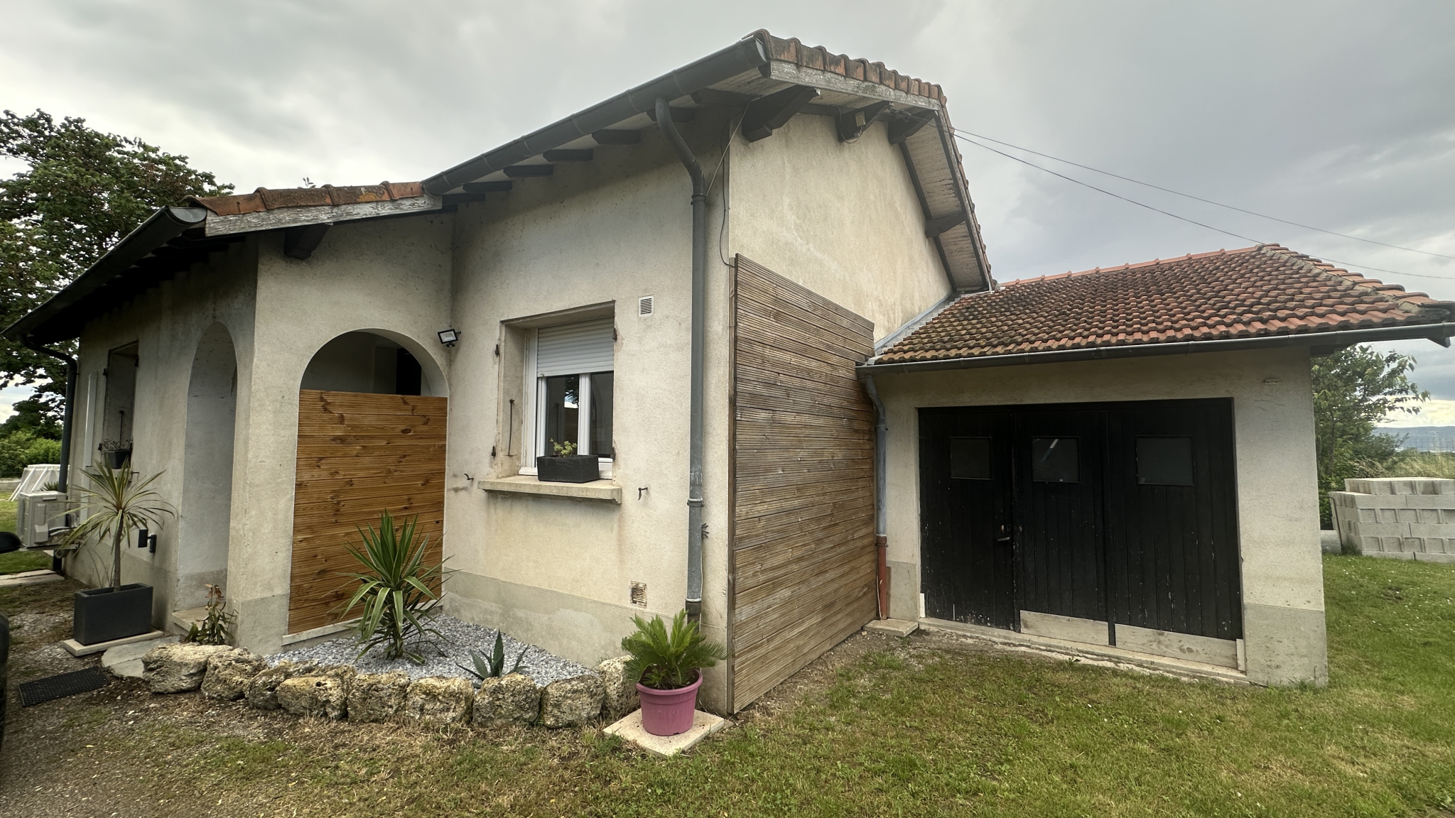 Maison de plain-pied d'environ 70m2, comprenant 2 chambres, un agréable espace de vie ouvert sur la cuisine avec un accès au jardin situé au sud. Elle dispose également d'une salle d'eau, de toilettes séparées, ainsi que d'un garage attenant de 15m2 avec accès direct. Le tout établi sur un terrain de 947m2, offrant encore des possibilités.