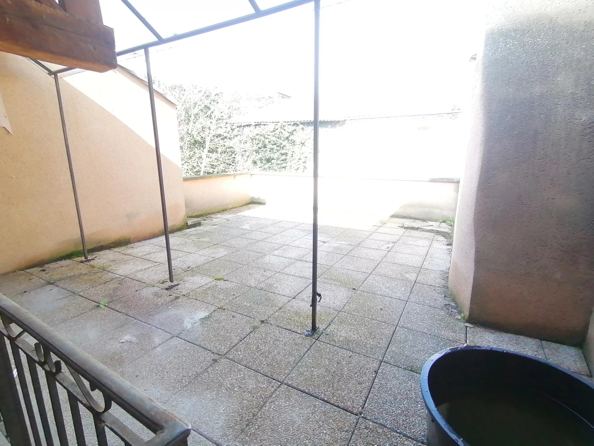 * Au premier étage : palier, dégagement, terrasse (30 m²), pièce de vie avec cuisine semi équipée (30 m²), bureau (9m²), une salle d’eau et un WC.