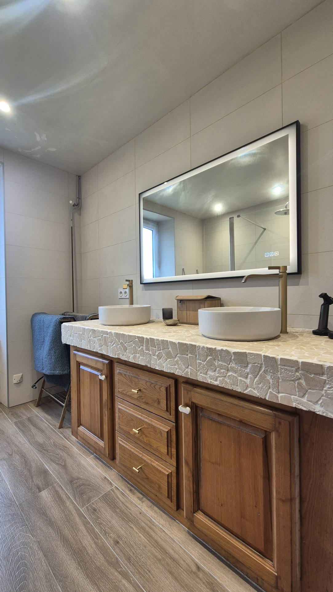 La maison est située à Monbalen sur la commune de Laroque-Timbaut, dans un environnement très calme et ensoleillé avec une vue dégagée sur la vallée. Il s'agit d'une maison en pierre avec pigeonnier entièrement rénovée, d'une surface d'environ 160m2. Elle se compose d'une entrée, d'une cuisine ouverte sur la salle à manger, d'un salon lumineux, de quatre chambres dont une suite disposant d'un grand dressing, ainsi que d'une salle de bain. Un hangar de plus de 100m2 s'ajoute à la propriété comprenant en plus une salle de sport. Le terrain accueille également une piscine de dix mètres par cinq exposé plein Sud, offrant un espace de détente idéal sans le moindre vis à vis.