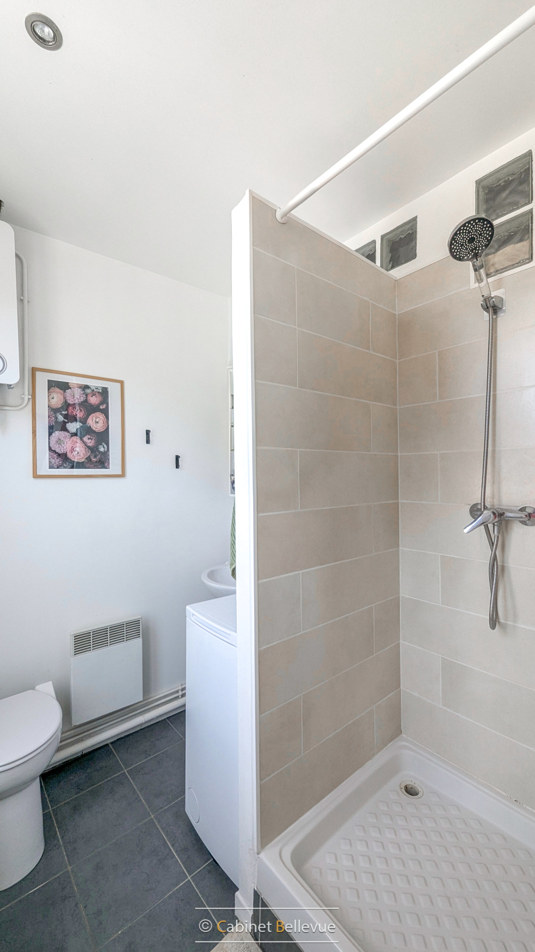 Situé au 2e étage, exposé sud et ouest, il se compose d'un séjour chaleureux offrant un espace salon et un coin salle à manger, d'une belle chambre, d'une salle d'eau avec WC et fenêtre, ainsi que d'une cuisine aménagée.