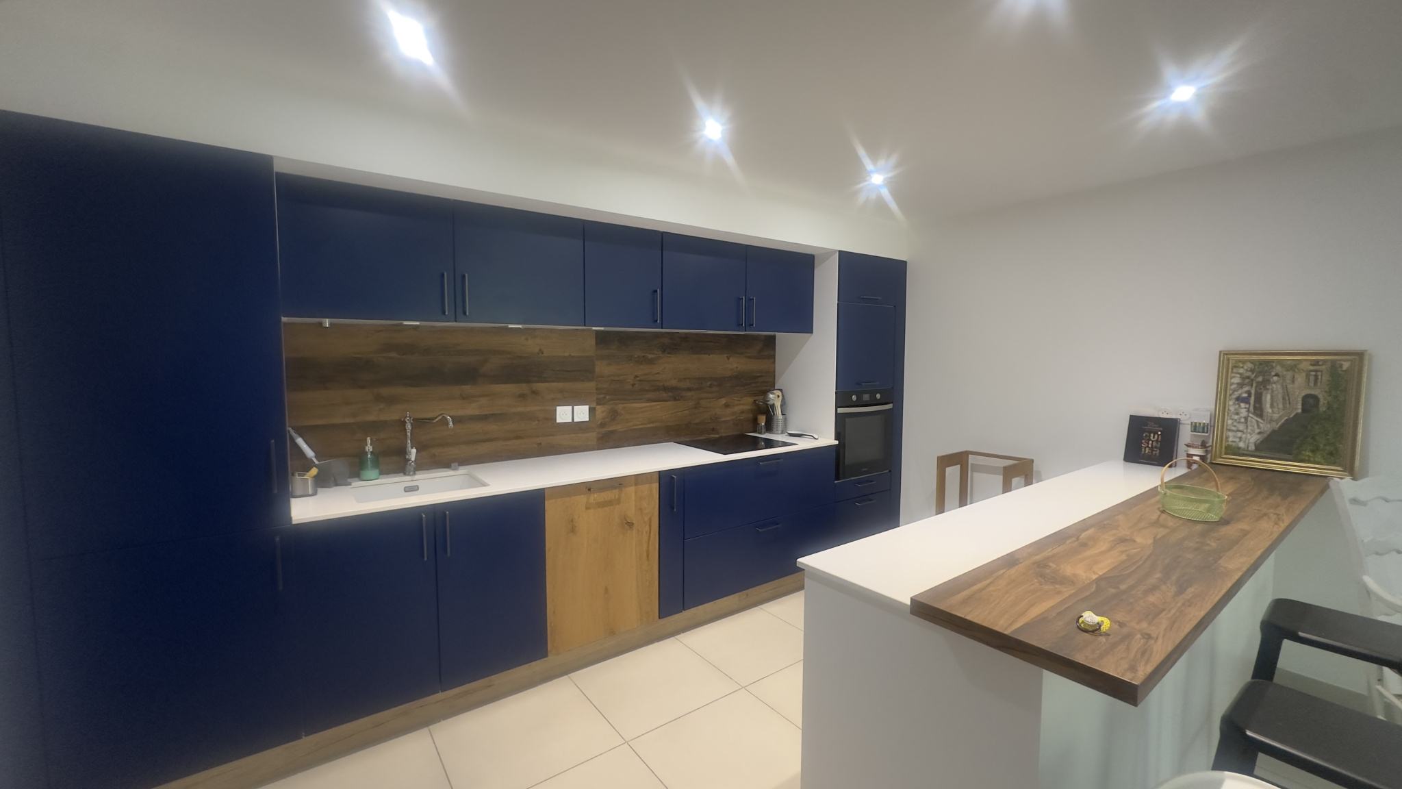 - Une pièce de vie centrale avec cuisine équipée ouverte et un grand cellier.