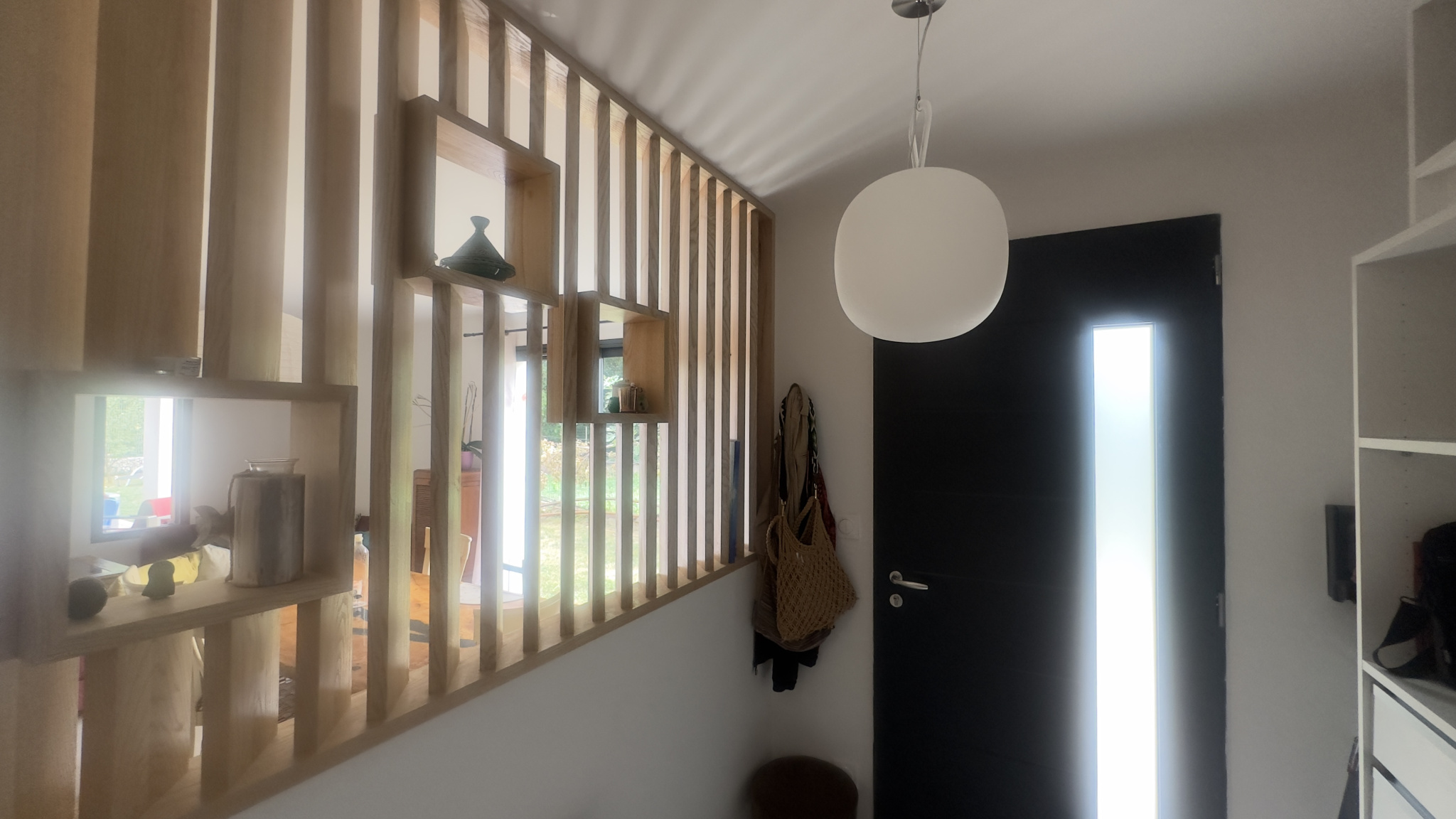 Équipée d'une pompe à chaleur et d'un plancher rafraîchissant, cette maison respecte les normes RT2012.