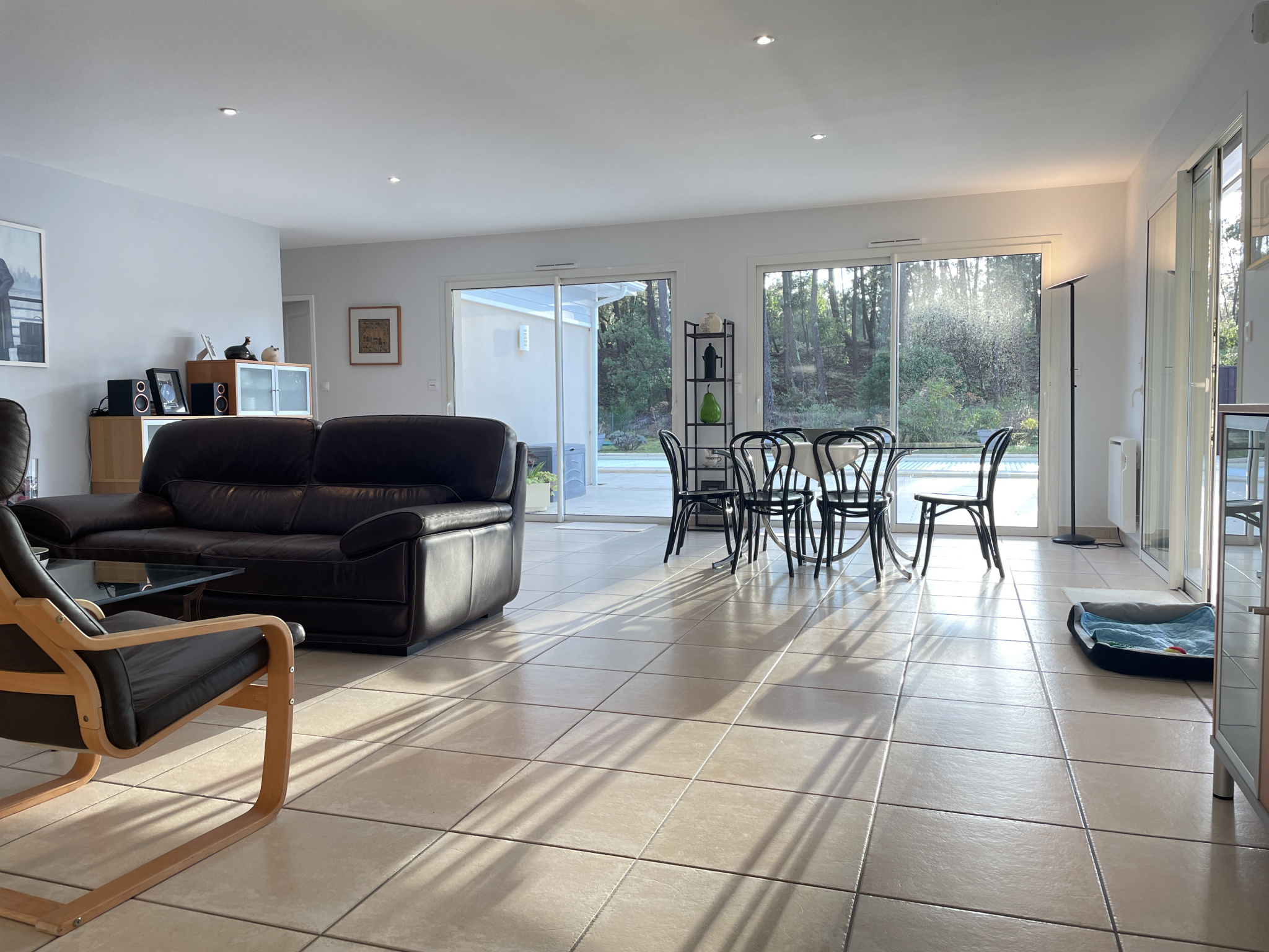 comprenant un très grand salon séjour de 46 m2 donnan directement vers la terrasse et la piscine, une cuisine donnant sur la loggia, une jolie chambre parentale de 20 m2 avec dressing et douche, un WC séparé, trois chambres avec une salle de bains double vasque comprenant une douche et une baignoire, un WC indépendant avec lavabo situé à l'entrée de la maison et un garage de 22 m2, une buanderie.