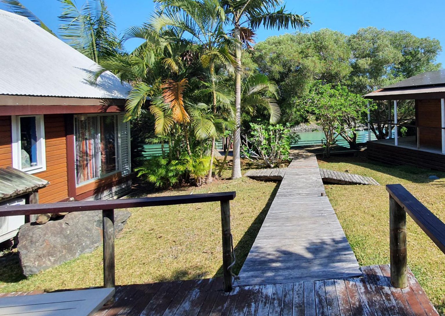 En bord de canal, dans le lotissement privé et sécurisé de Naia, ensemble de 4 bungalows sur un beau terrain plat de plus de 15 ares.