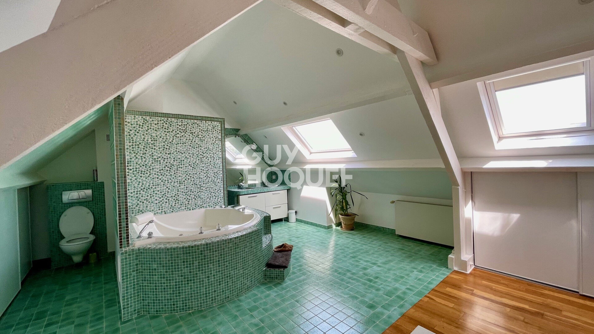Combles comprenant une suite parentale avec salle de bains balnéo, wc et dressing.