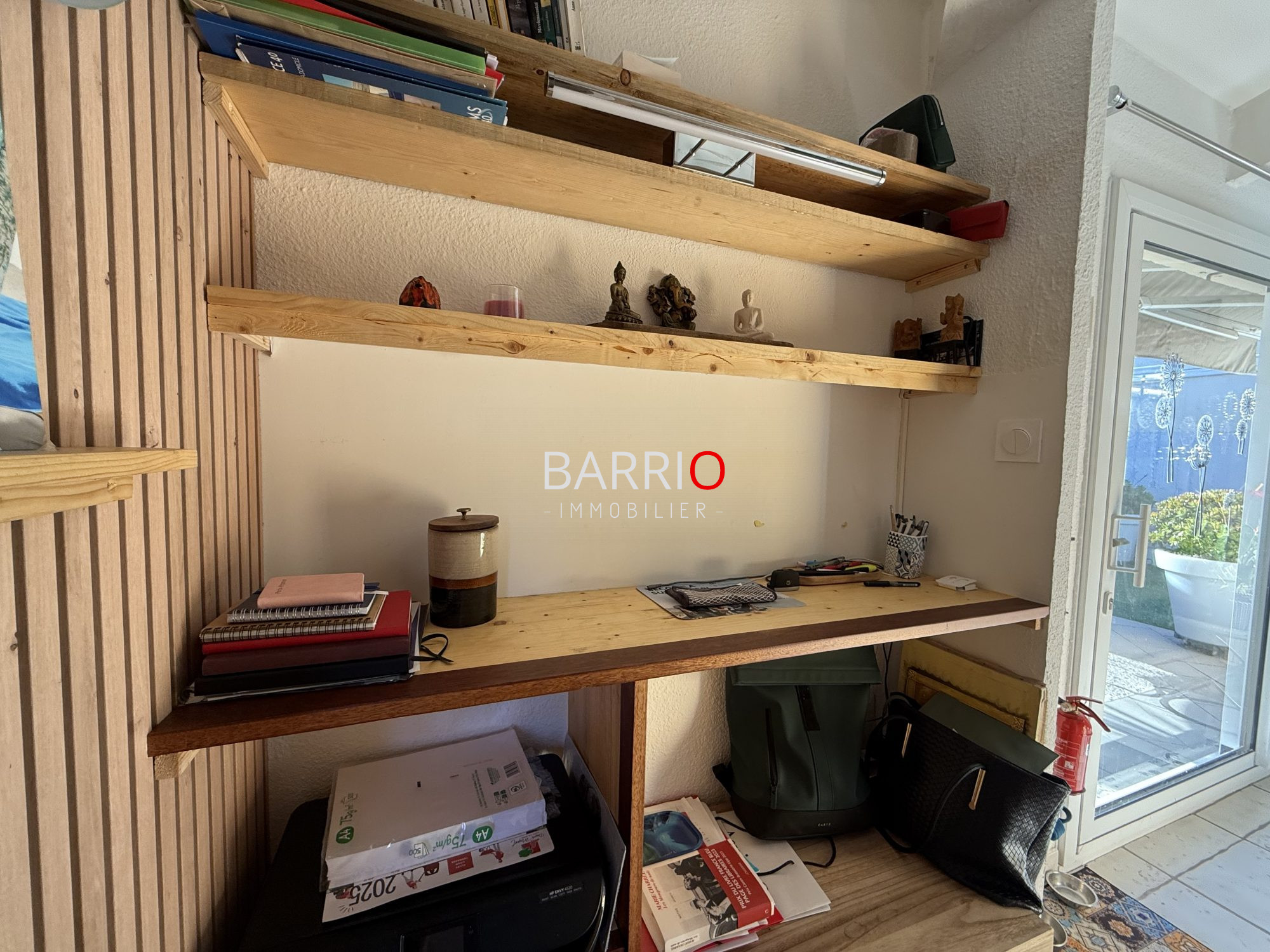 Côté jardin, profitez d'une belle terrasse sans vis-à-vis, agrémentée d'un cabanon maçonné. Un lieu parfait pour prendre vos repas en extérieur ou savourer des moments de détente à l'abri des regards.