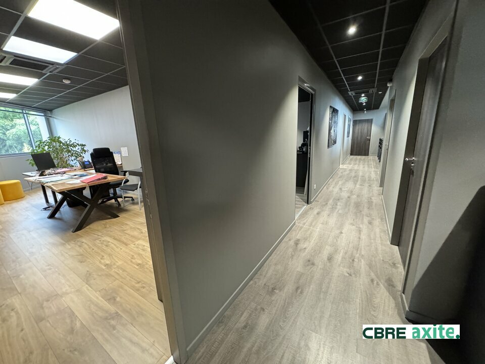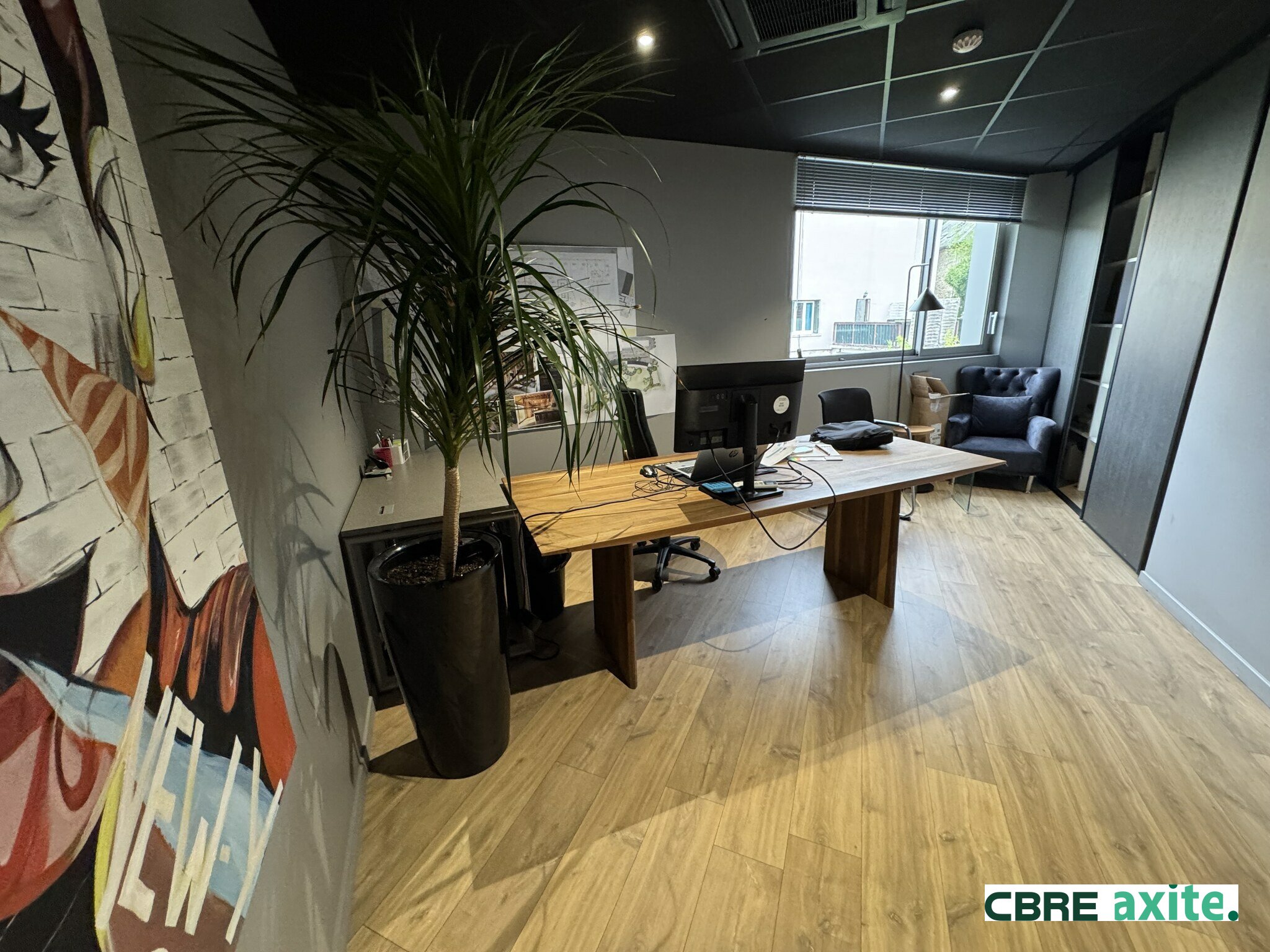Au premier étage d'un batiment récent, nous proposons 4 bureaux confortables allant de 17 à 52 m². Deux bureaux disposent d'un accès direct à une terrasse, et l'un d'eux bénéficie de son sanitaire privatif avec douche et vestiaires. En complément, une salle de réunion de 46 m² avec une kitchenette haut de gamme.Très lumineux et aménagés avec des matériaux de qualité, ces espaces sont pensés pour accueillir des activités tertiaires ou de services dans un cadre agréable.En complément, au rez-de-chaussée environ 15 m² comprenant un dégagement permettant du petit stockage ainsi qu'un sanitaire avec douche.Le tout est équipé de la climatisation réversible et bénéficie de 7 places de stationnement privatives.