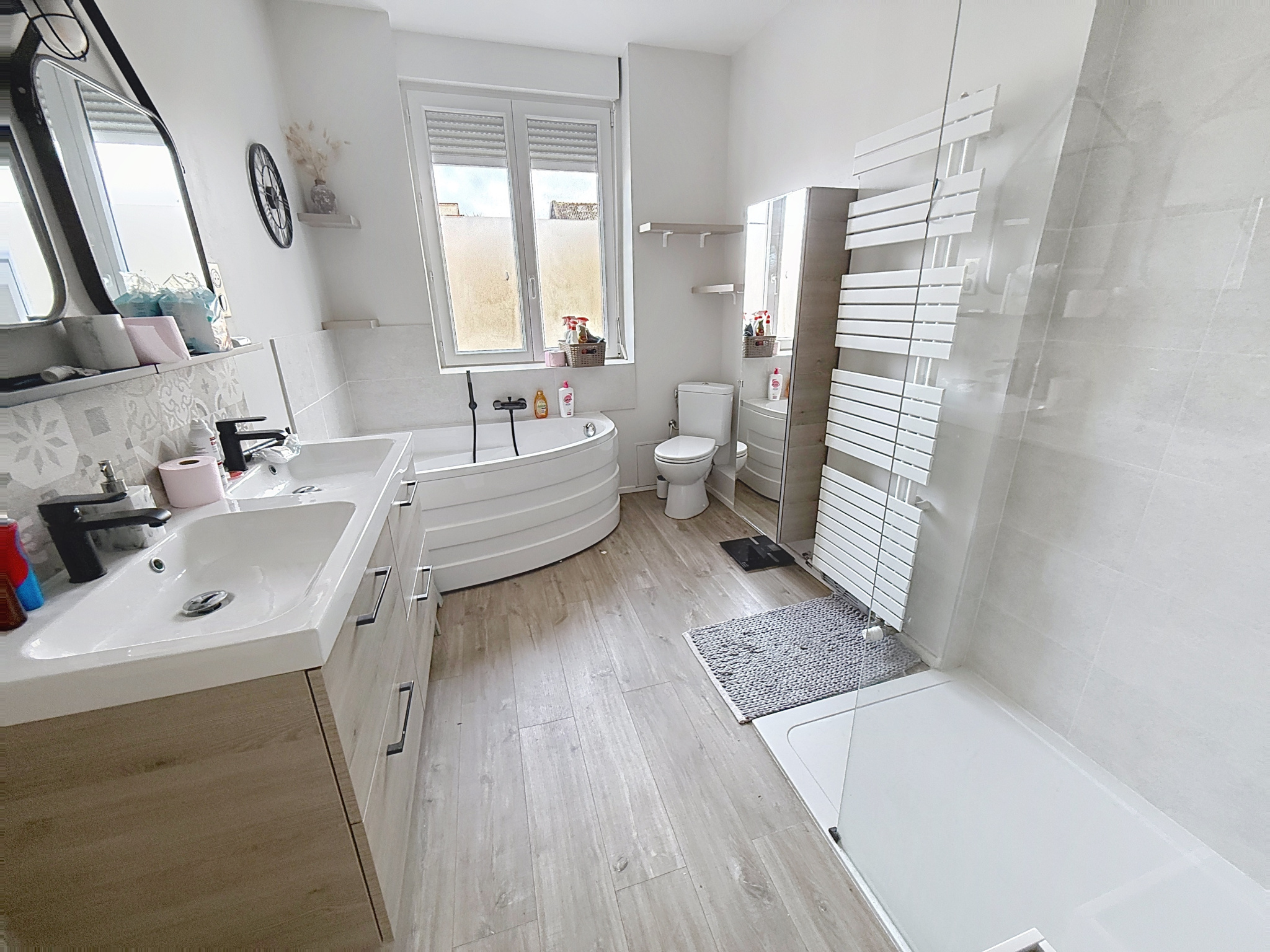 Large maison type 1930 semi-individuelle de 115m2 hab située dans une rue recherchée entre le centre ville de CROIX et le parc barbieux, elle est constituée d'une entrée, un garage, salon, séjour de 36m2, cheminée feu bois avec insert, grande cuisine équipée, wc, double vitrage, chauffage central gaz.