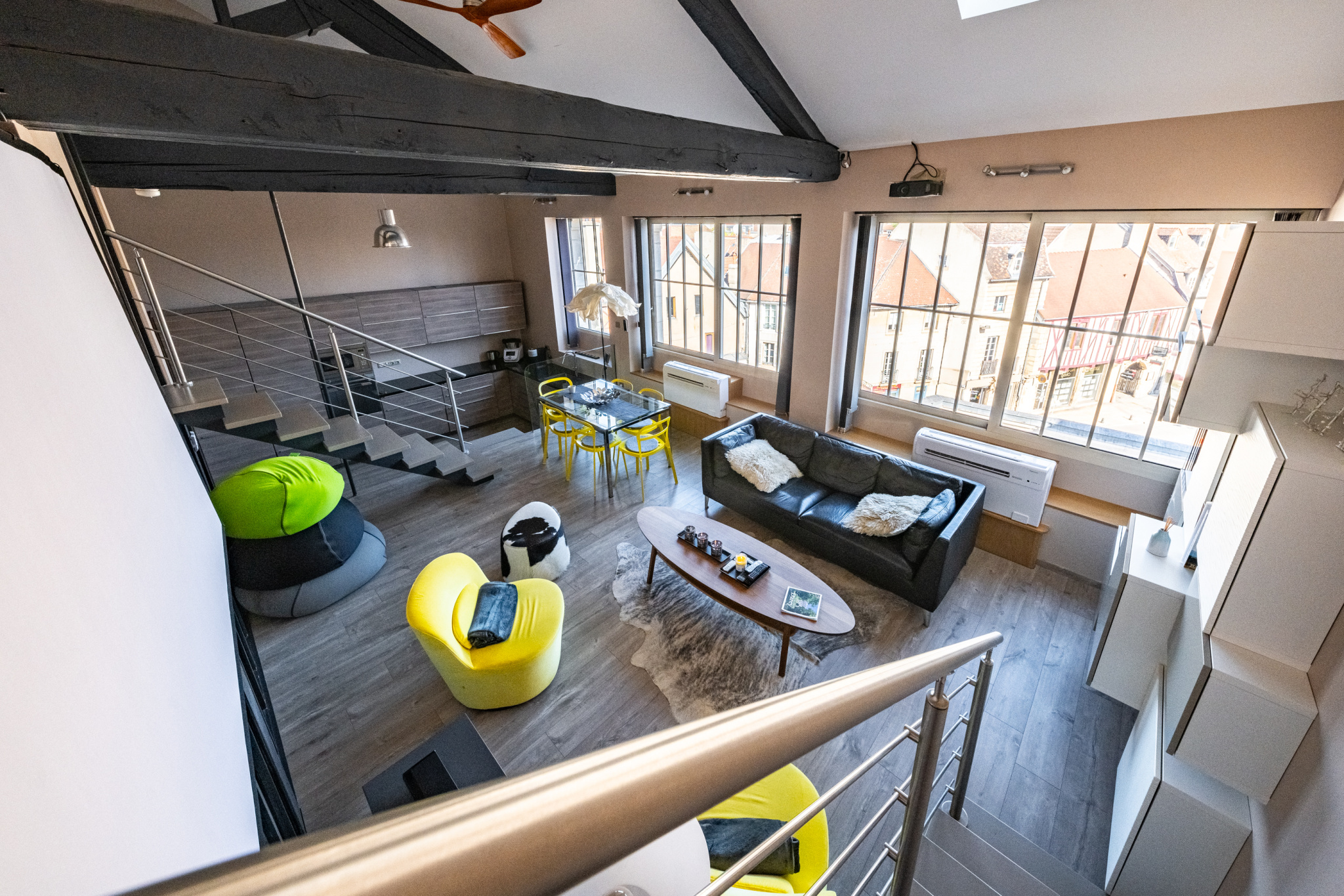 Au coeur du centre ville de Dijon, à 2 pas de la place Bossuet , très beau loft de plus de 93 m2 au deuxième et dernier étage d'un hôtel particulier. Il comprend, une entrée avec dressing, une vaste cuisine équipée ouverte sur le séjour, une chambre, une salle de bain et un coin buanderie. En demi-niveau : un séjour avec une vue incroyable sur Dijon et à l'étage, deux belles chambres. Loft baigné de lumière, avec de nombreux rangements sur mesure, un écran de cinéma intégré et la climatisation. Coup de coeur assuré !