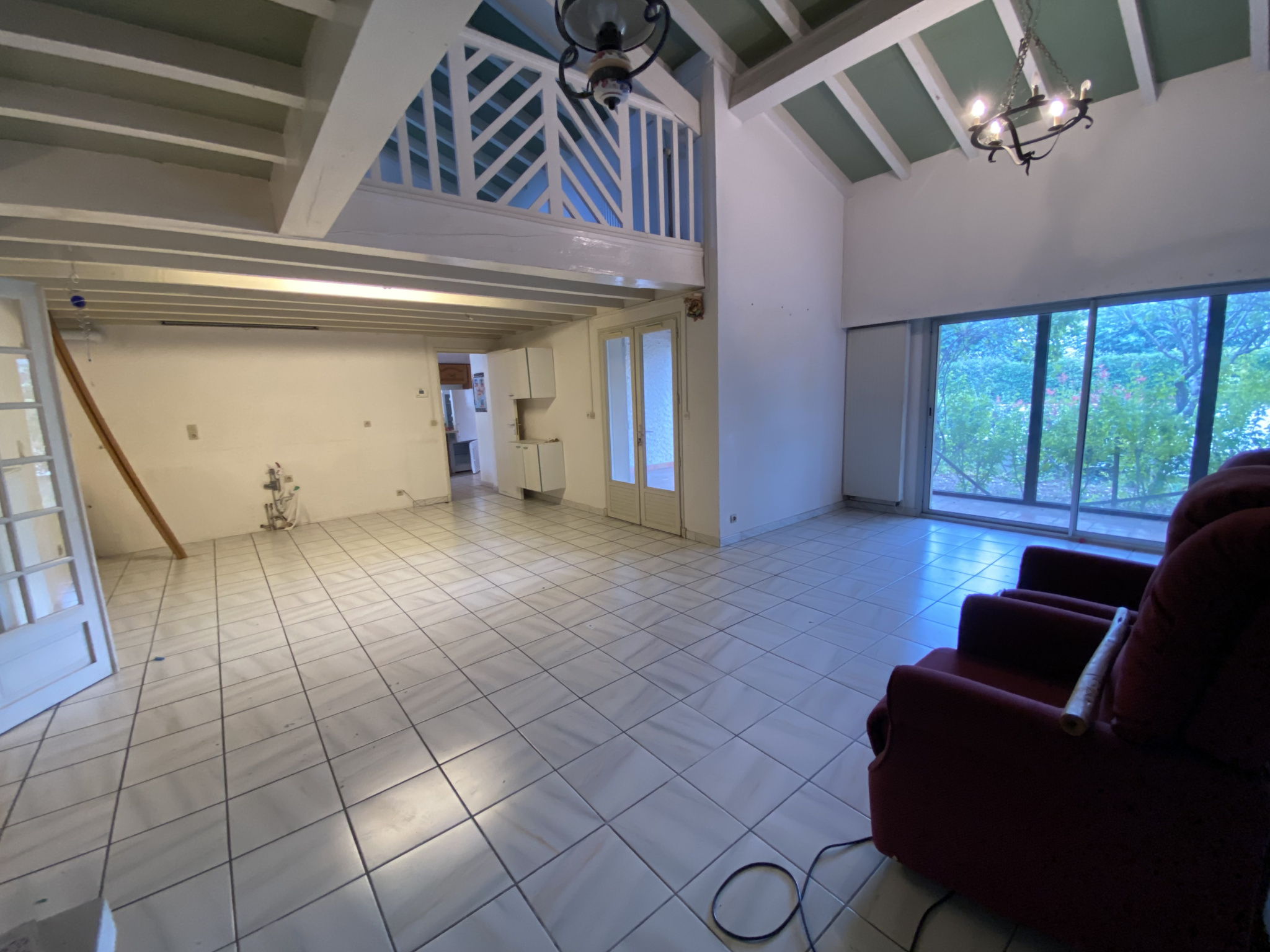 MAISON DE PLAIN-PIED COMPRENANT : UNE ENTREE, UN SALON/SEJOUR AVEC CHEMINEE DE 44 M2, UNE CUISINE SPACIEUSE DE 25 M2, 3 CHAMBRES AVEC PLACARD, UNE SALLE D'EAU, UN WC, UNE MEZZANINE