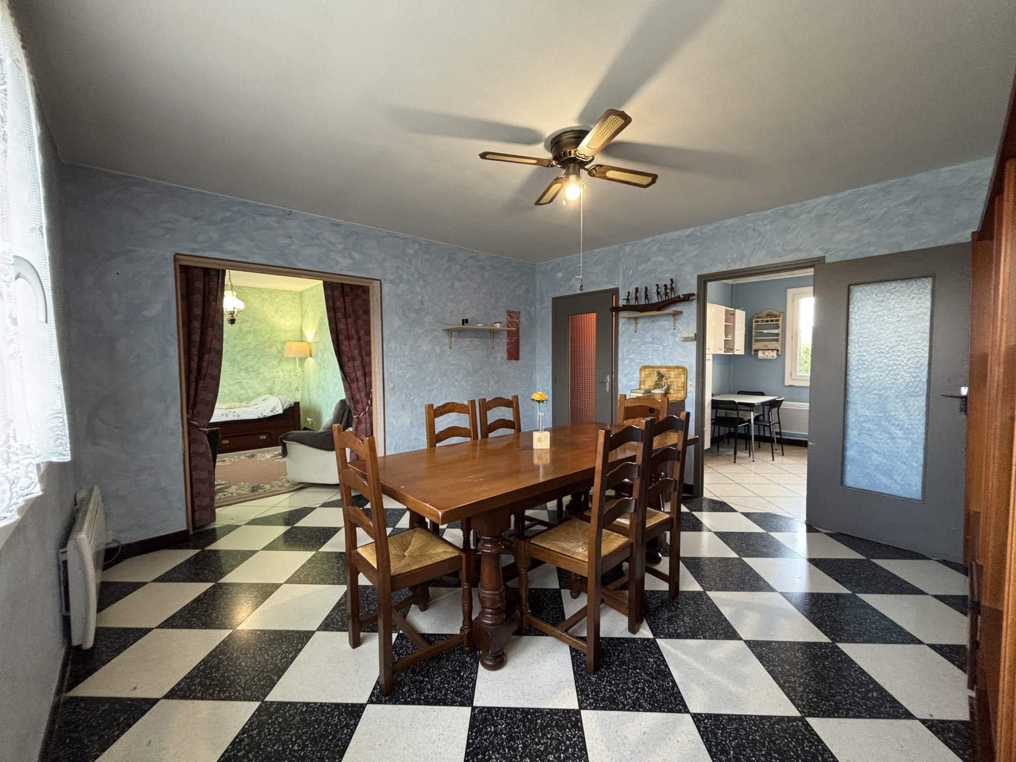 Au rez-de-chaussée : un hall d'entrée, une cuisine indépendante, un séjour, un salon, un W.C séparé, un dégagement desservant le garage et l'escalier.