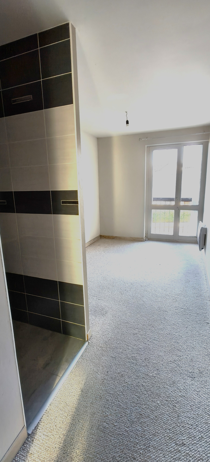 L'entrée et ses rangements mènent vers la cuisine aménagée et équipée et la pièce à vivre.