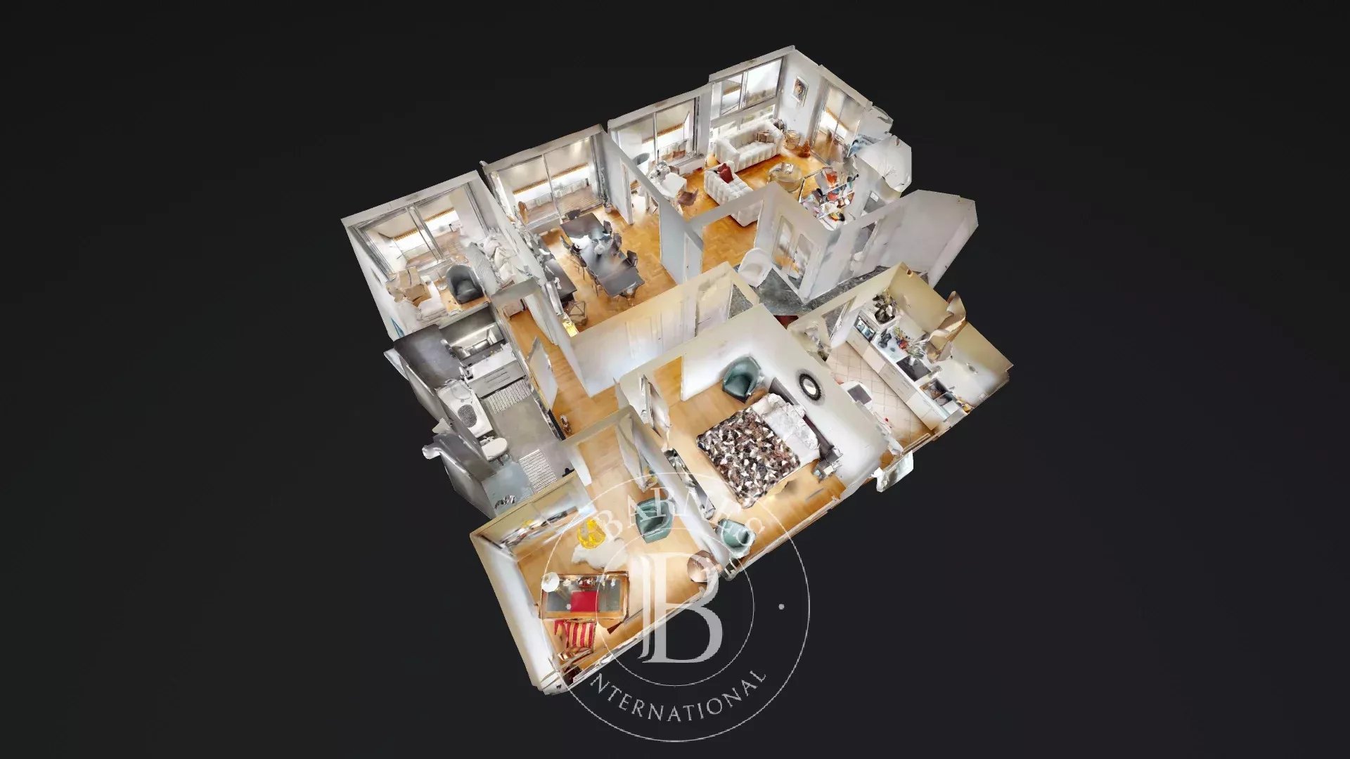 Une cave et un boxe fermé complètent ce bien. Copropriété de 19 lots principaux et de 41 lots annexes.