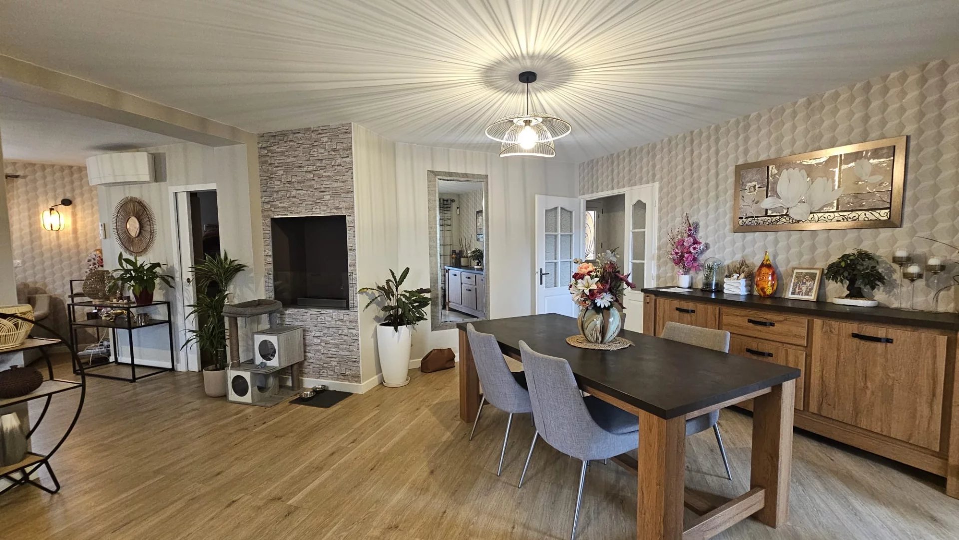 Prestations de qualité: Plancher chauffant/rafraîchissant avec pompe à chaleur, climatisation réversible à l’étage, forage, aspiration centralisée, portail électrique, cheminée à l’éthanol.