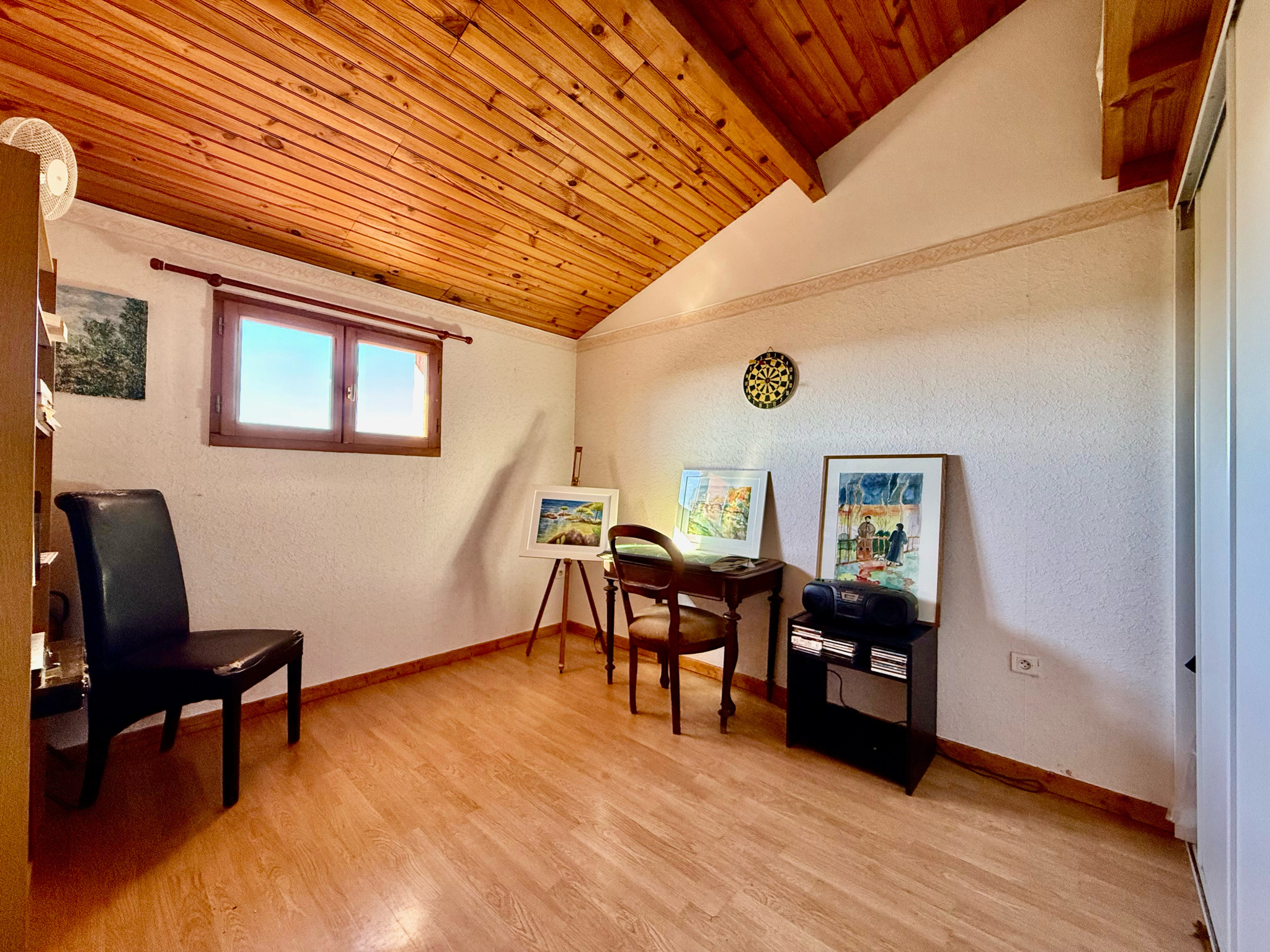 Elle dispose d'un salon/séjour lumineux et chaleureux avec insert et climatisation ouvert sur la cuisine, 3 chambres, une salle de bains et un garage en demi sous-sol.