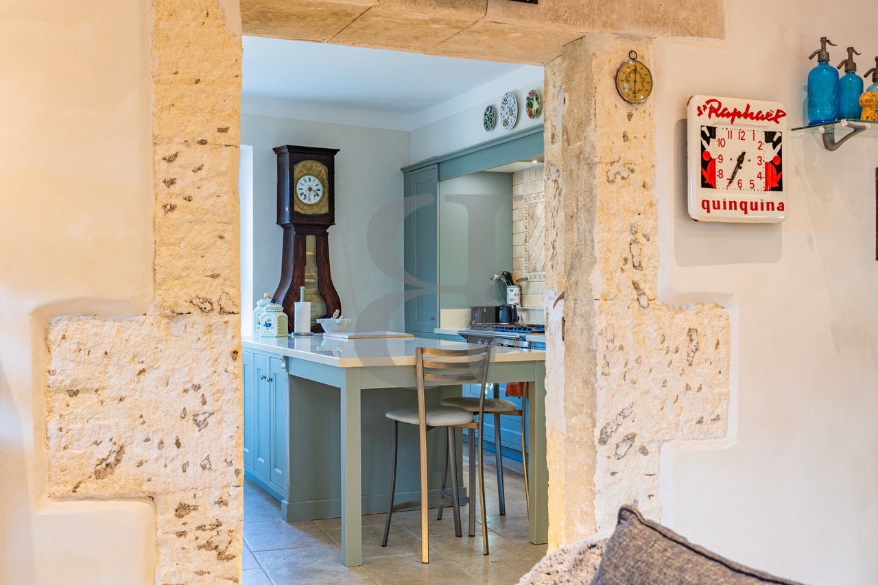 Mas de village en pierres, rénové avec élégance.