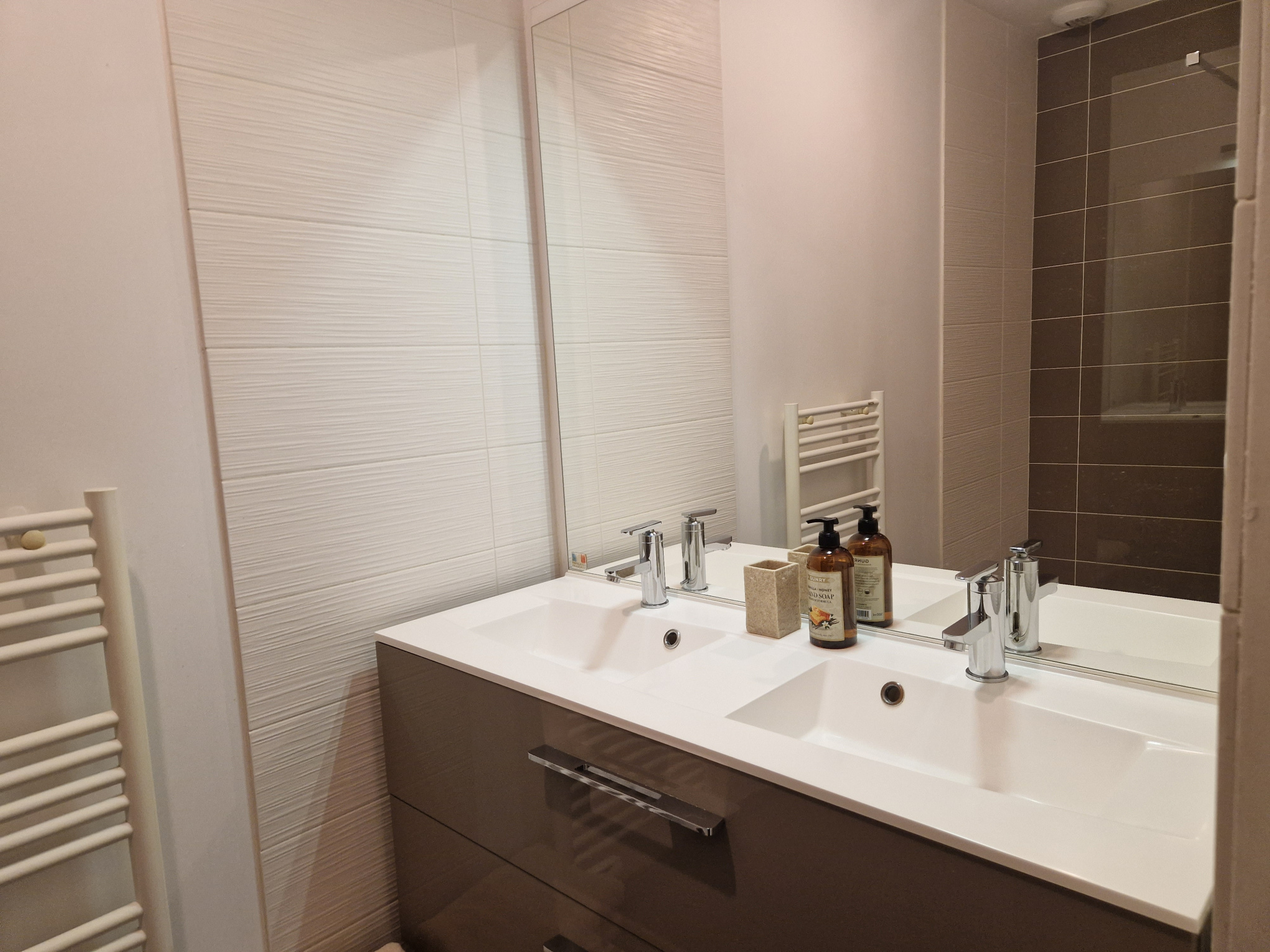 Au même niveau que le séjour, une suite parentale avec sa propre salle de bains privative, équipée d'une douche à l'italienne et d'une double vasque. Des toilettes indépendantes complètent cet espace. À l'étage, deux grandes chambres partagent une salle de bains commune. L'appartement dispose également de toilettes d'invités et d'un atelier/buanderie pratique. Parmi les autres atouts de ce bien, vous bénéficierez d'un garage intérieur pouvant accueillir une voiture, ainsi que d'un abri pour vos vélos. L'appartement fait partie d'une petite copropriété sécurisée, avec un accès sur la rue. Des aménagements supplémentaires, y compris l'installation d'un ascenseur, sont possibles (devis disponible sur demande). Possibilité d'exercer une activité libérale. Ce bien est en excellent état et libre d'occupation, prêt à accueillir ses nouveaux propriétaires.