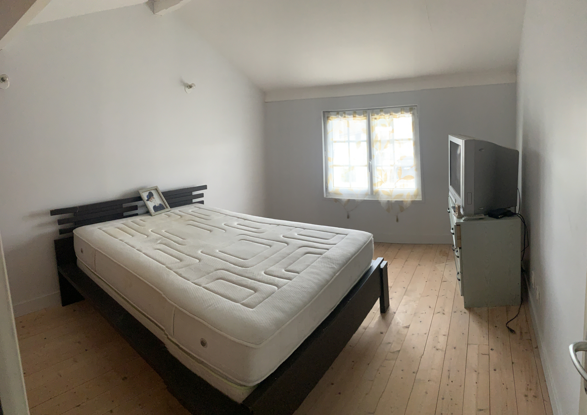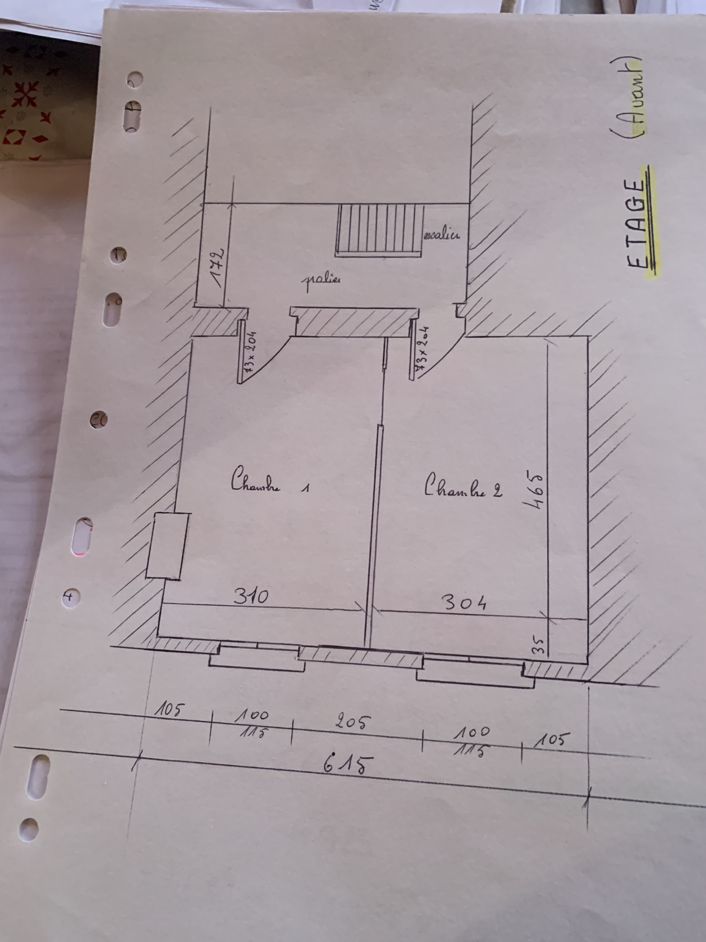 A l' étage pièces palière de 6 m2 , et 2 chambres ( 12 m2 et 10.20 m2 ) .