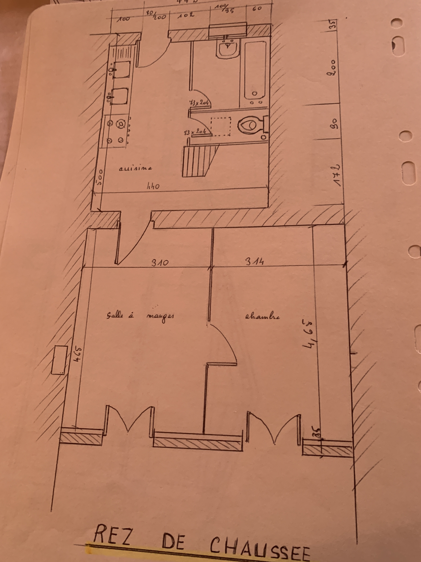 Au rez-de-chaussée : séjour salon de 28 m2 , cuisine de 9.20 m2 , salle d' eau de 5.10 m2.