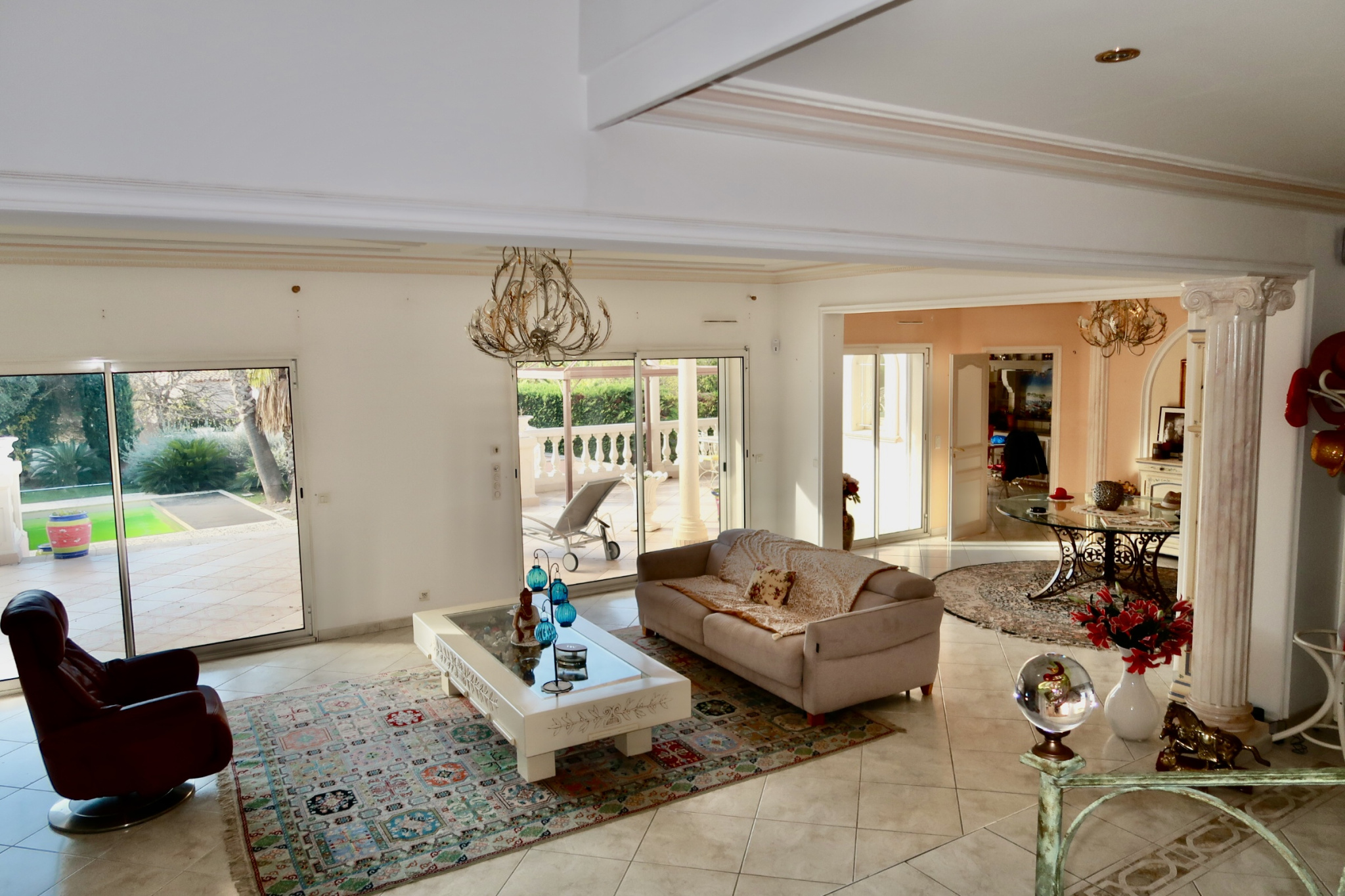 Une pisicne bien exposée, entourée de verdure , deux grands garages , rare sur le secteur.