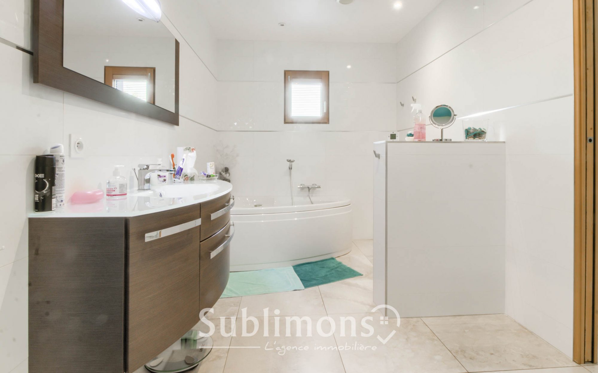 La cuisine, aménagée et équipée, devient le coeur de la maison, prolongée par une arrière-cuisine fonctionnelle avec accès direct au garage. Un vrai atout au quotidien.