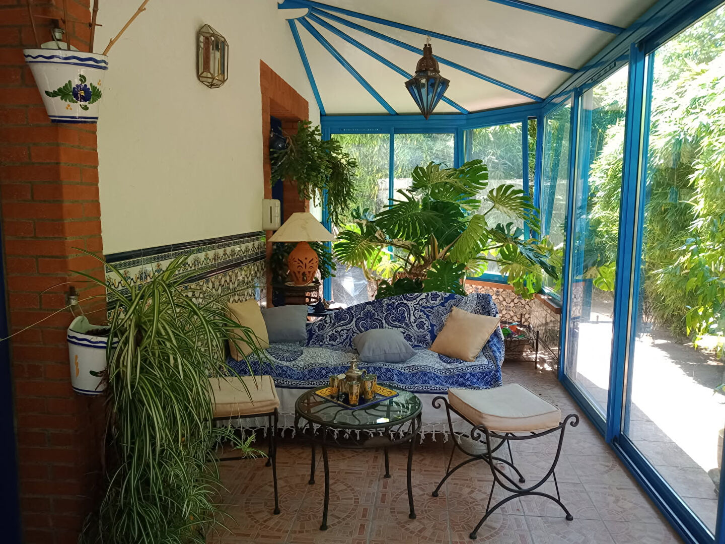 Maison de 112m², salon et cuisine fermé, véranda, 2 chambres dont une chambre parentale ( wc + douche ), une salle d'eau, avec jardin / piscine et un garage.