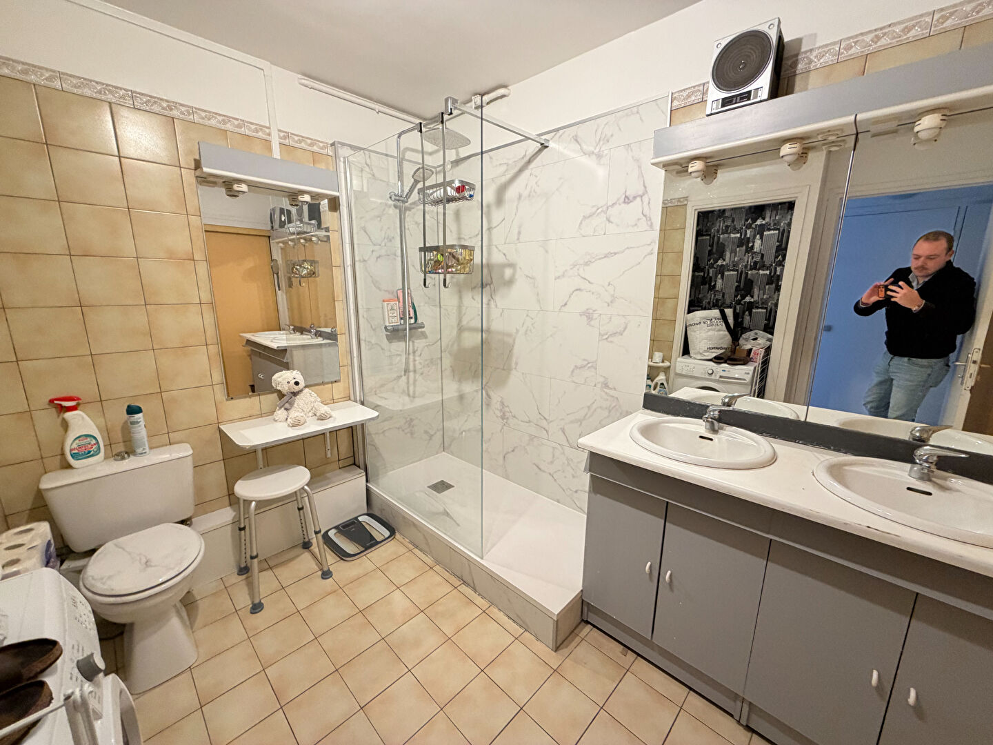 L'espace nuit bénéficie d'une salle de bains avec WC ainsi qu'un second WC indépendant. Une seconde salle de douche vient compléter ce bien fonctionnel. De nombreux rangements sont présents dans l'ensemble de l'appartement, offrant un confort de vie appréciable.