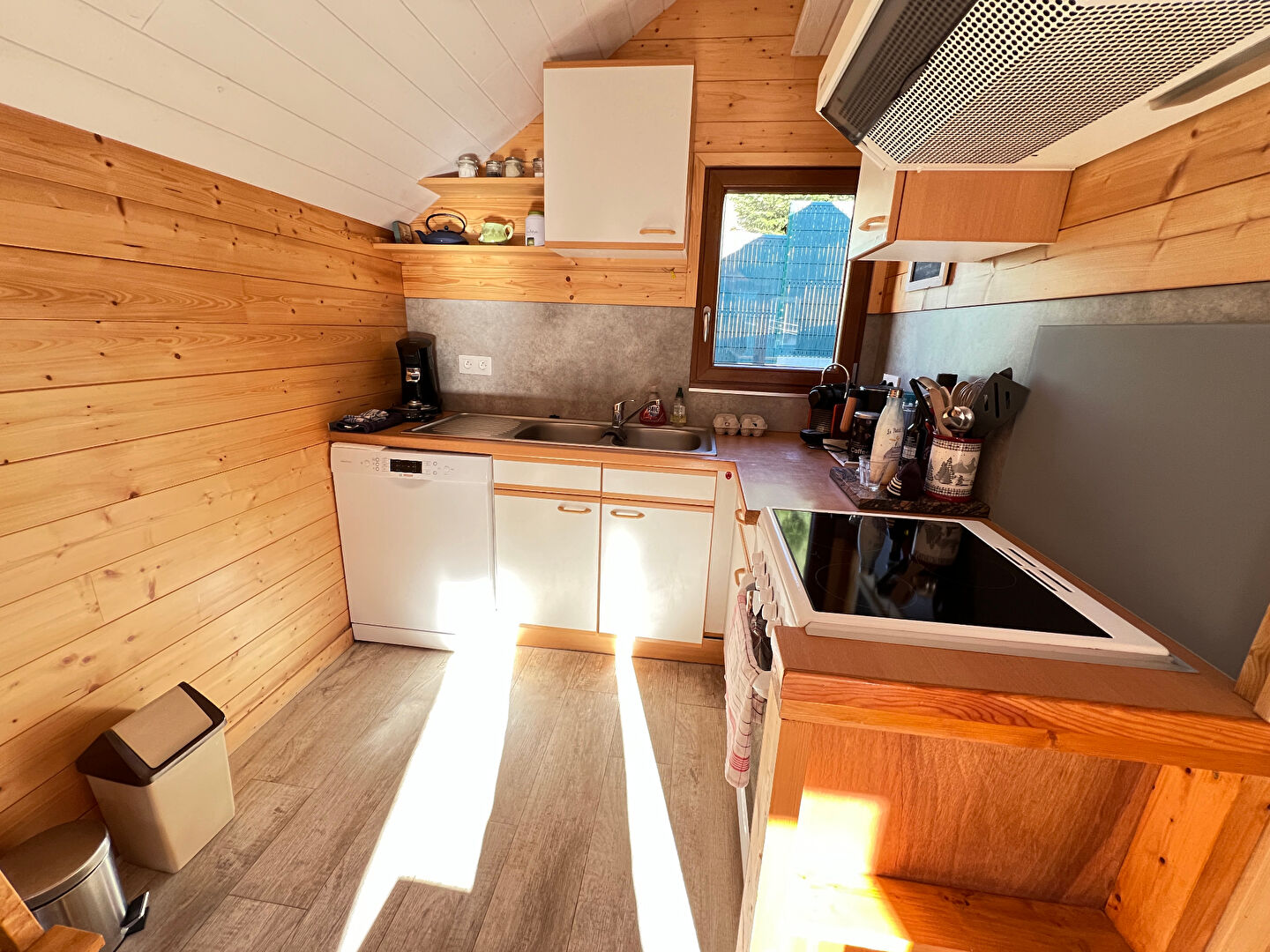 Il se compose d'un séjour chaleureux équipé d'un poêle à pellets, de deux chambres avec dressings, d'une cuisine fonctionnelle et d'une salle d'eau.