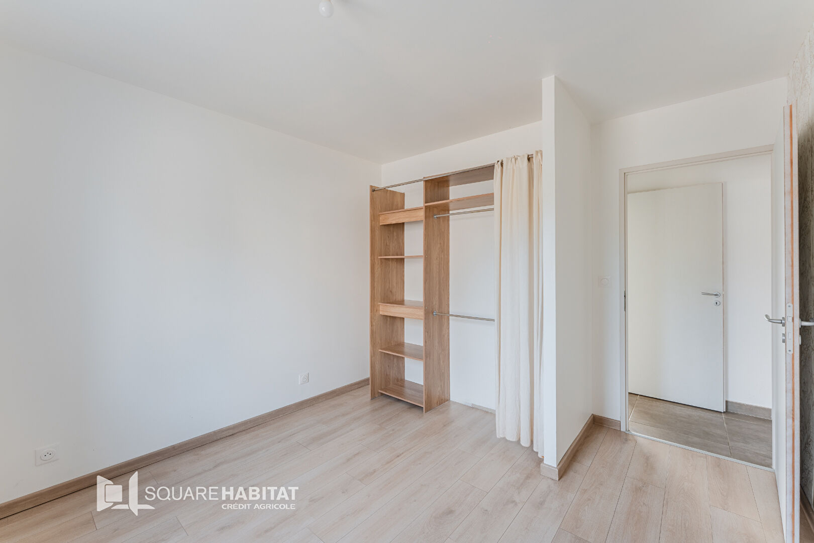 Une entrée avec placard, une pièce à vivre avec cuisine aménagée et équipée ouverte .