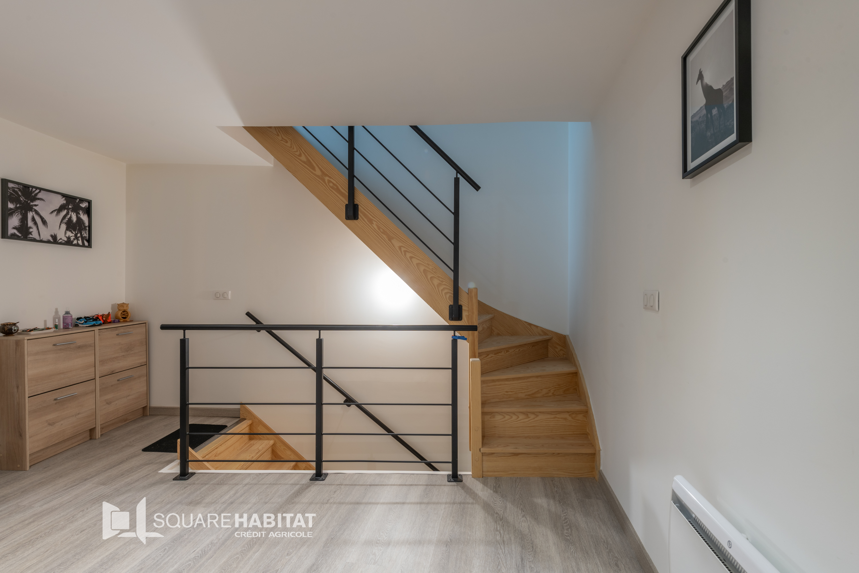 Au premier : palier desservant une chambre de 12.9m², salle d'eau et WC.