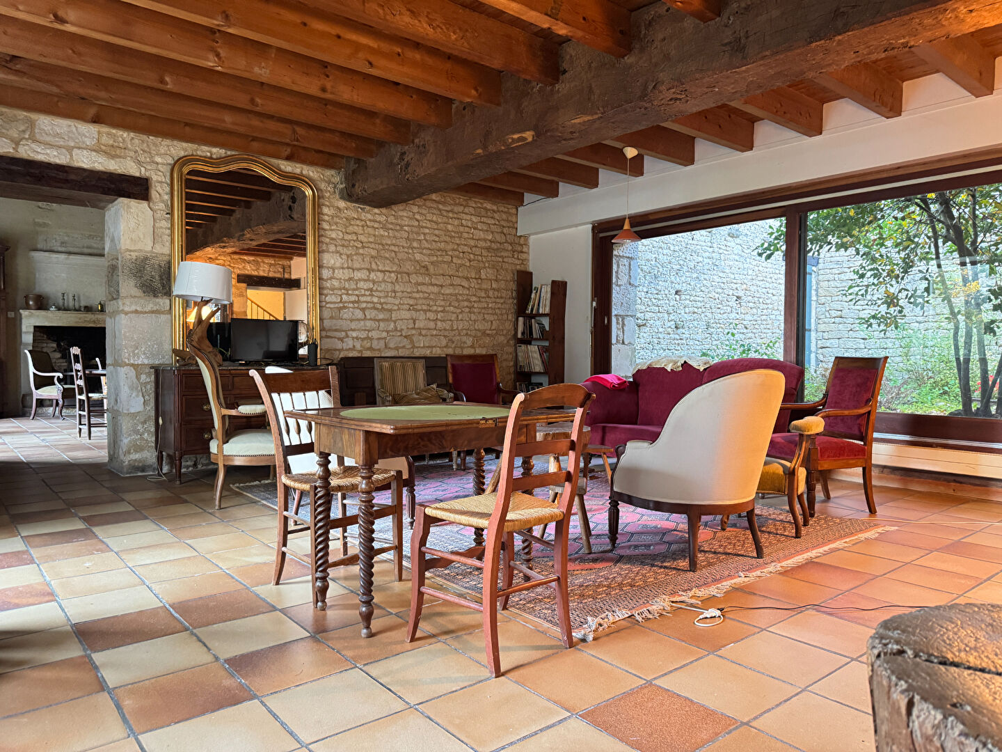 A quelques kilomètres du centre bourg de Coulon et dans un cadre calme, venez découvrir cette magnifique maison en pierre chargée d'histoire, d'environ 288 m² habitables sur un grand terrain d'environ 6500 m². Cette maison comprend au rez-de-chaussée : entrée, cuisine aménagée et équipée (récente), salon/séjour , salle à manger, bibliothèque (ces trois pièces sont agrémentées d'une cheminée en pierre), chambre, studio (chambre + salle d'eau avec WC + kitchenette avec un accès extérieur). Il y a également un patio accessible de l'entrée, du salon et du studio.