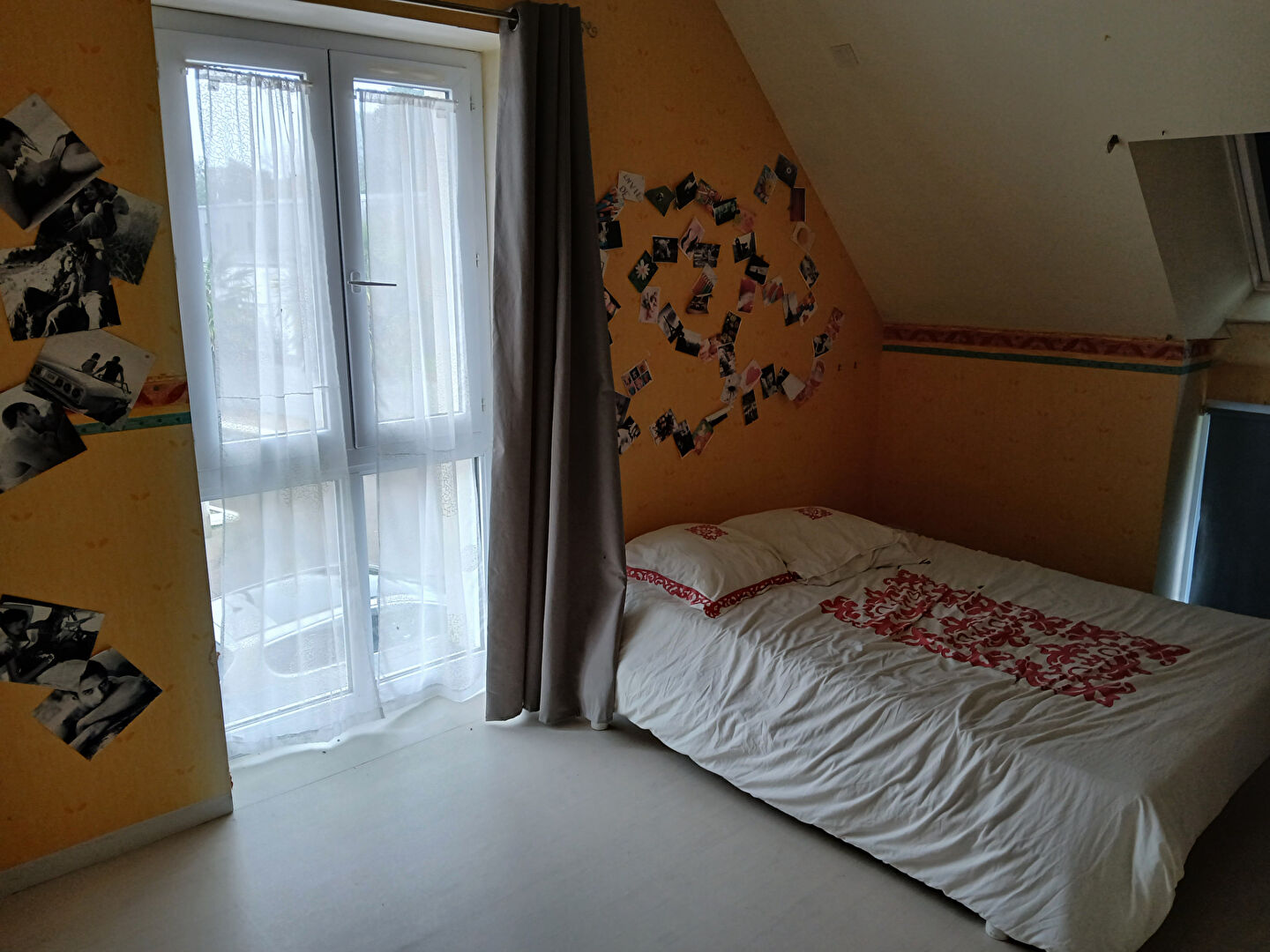A l'étage : deux chambres dont une d'environ 14 m², un dégagement, une salle d'eau avec WC.
